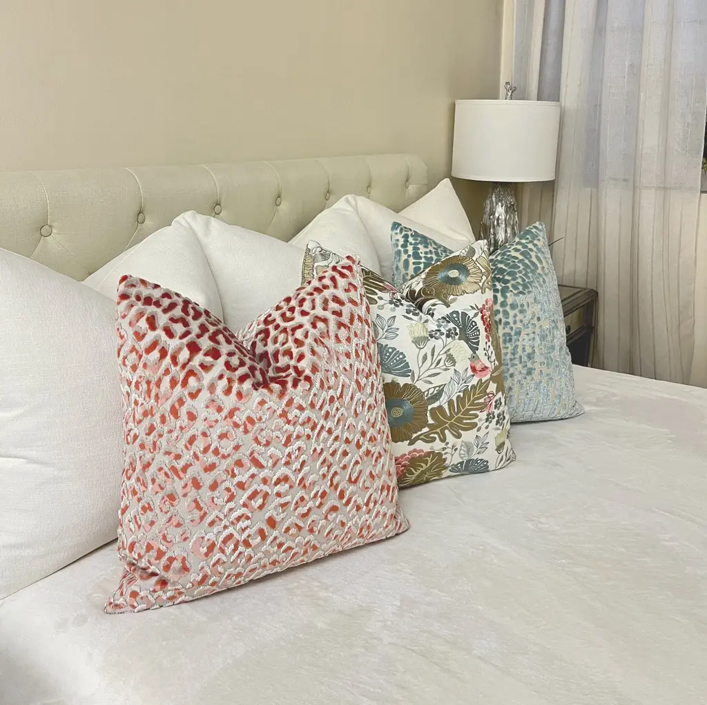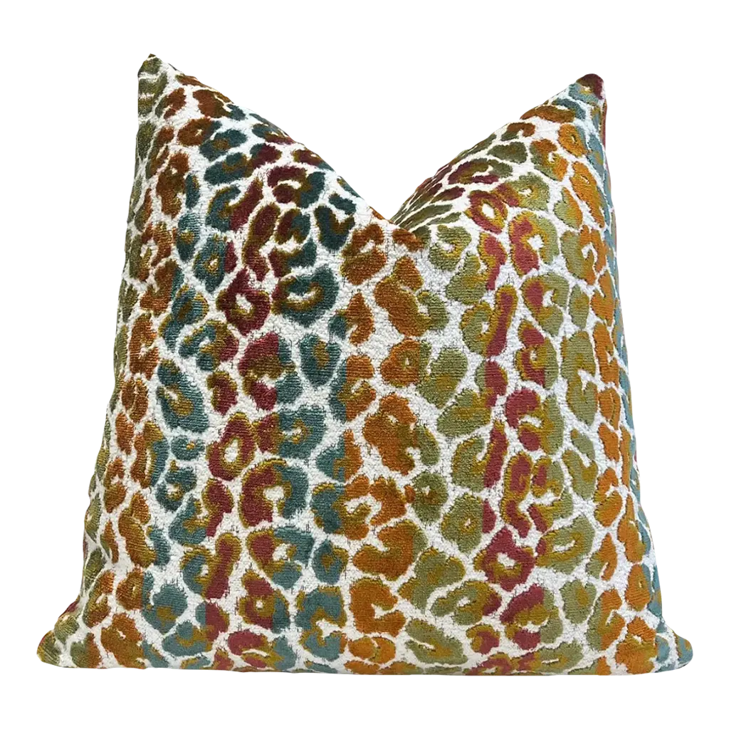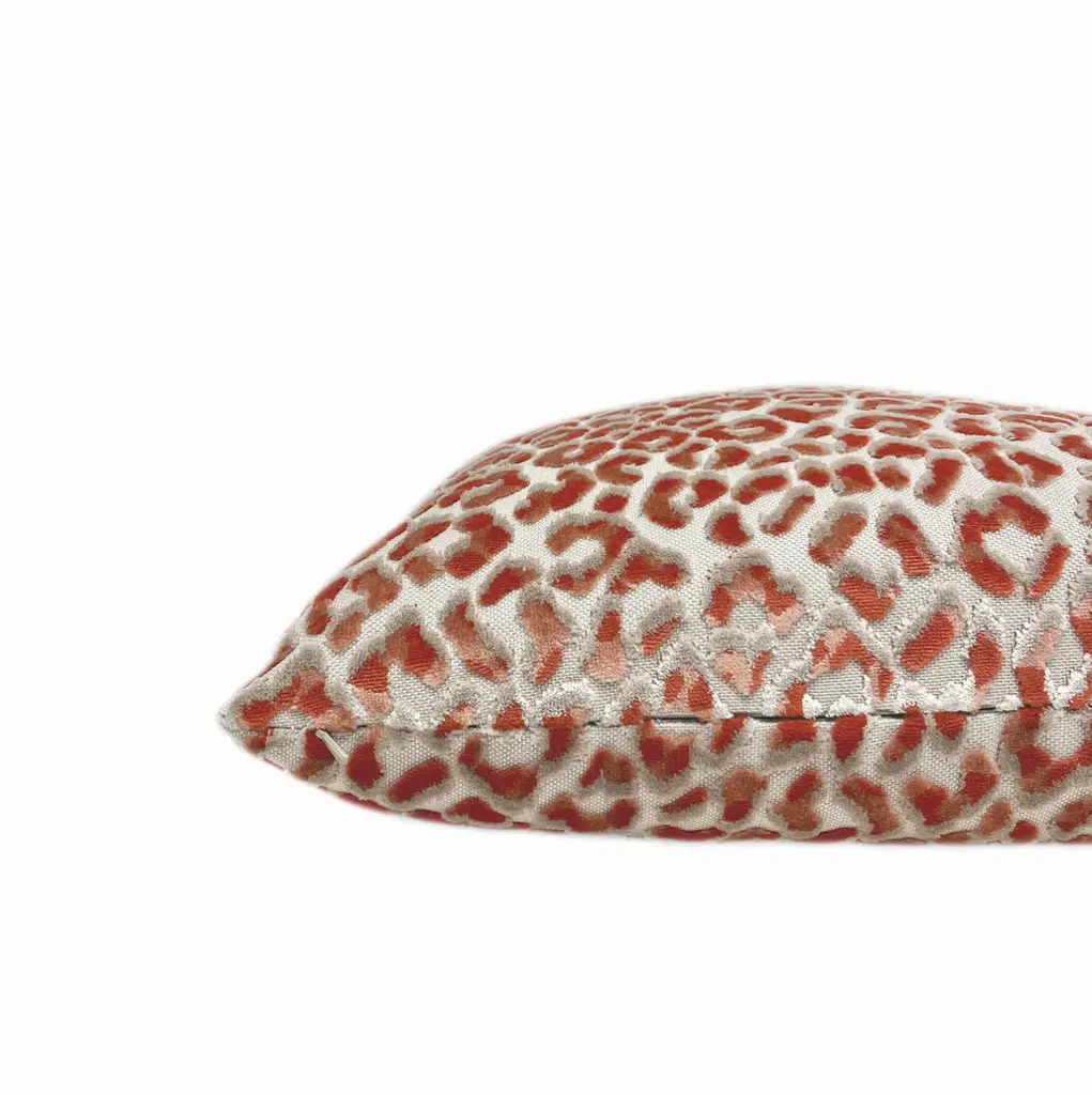 This gorgeous raspberry blush and cream leopard animal print pillow will set your room apart. The pattern is a raised textured leopard on a cream background. It has just the right touch of sheen to make the pattern stand out. The color combination of raspberry blush and peach is colorful and sophisticated. This pillow cover will add a touch of elegance and style to your home. Mix and match with other patterns to create an interesting pillow scape. Our pillow covers are tapered at the corners to avoid pointy dog ears. When stuffed, they will be perfectly square. This pillow comes stuffed with a Feather down insert. Fabric: Velvet Stuffing: 95/5 Feather Down Insert Care: Dry Clean Closure: Nylon zipper closure Made to order Will ship within 5 business days