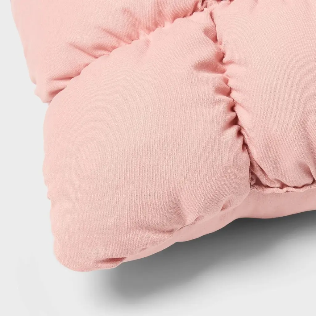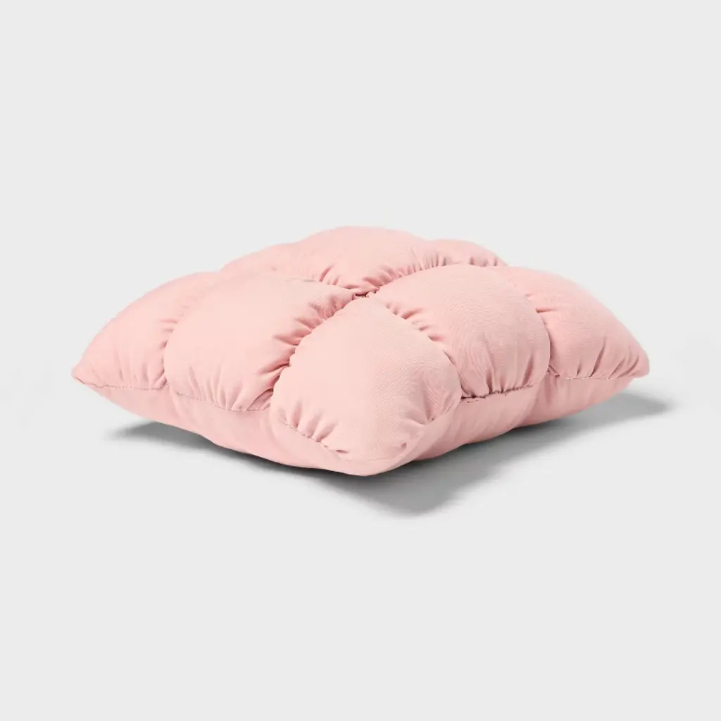 Elevate your bedscape or seating arrangement with this RE Decorative Square Throw Pillow from Room Essentials™. This decorative throw pillow features a tufted pattern in pink for a stylish look that coordinates with any decor style or color palette. The soft recycled polyester microfiber exterior with polyester fill offers a comfy surface to lean against, while the sewn-seam closure gives it a neat finish.Room Essentials™: Everyday Value