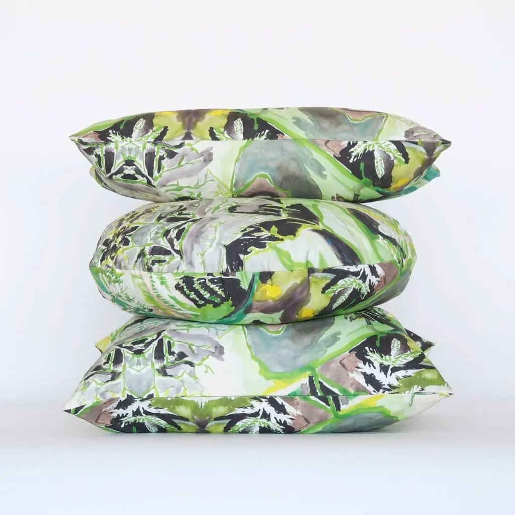 The Rectangle Fern Pillow is digitally printed with an original watercolor painting by Naomi Clark. Every piece out of Clark's abstract and richly colored print collection for Fort Makers adds beauty, art and comfort to the home.Materials: linen cotton canvas, zipperCare: machine wash cold, line dry