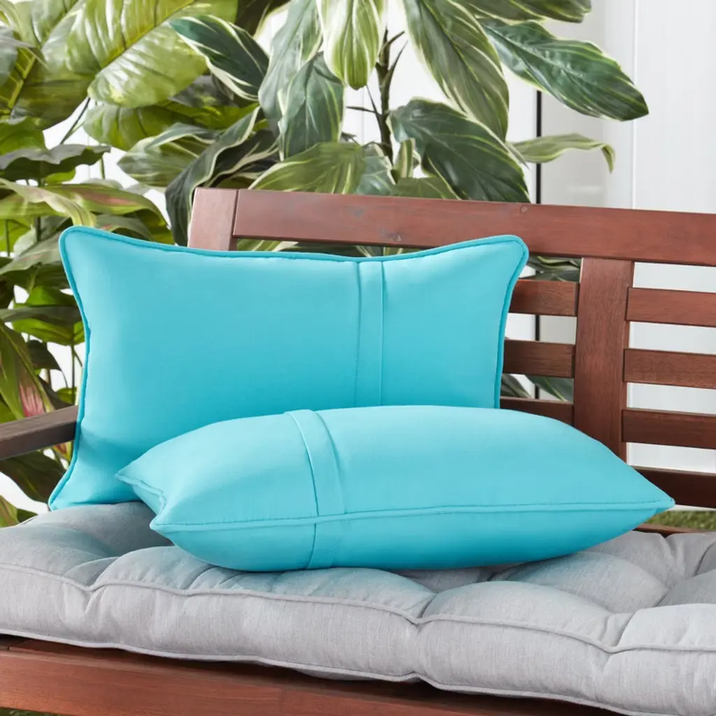 Enhance your outdoor space easily with a new set of Sunbrella fabric throw pillows from Kensington Garden. The heavy-duty Sunbrella acrylic fabric is fade, water, stain and mildew resistant. Pillows feature a decorative pleat detail, and trim cording. The removable cover includes a zipper closure for easy removal. The included pillow insert is generously filled with a soft polyfiber made from 100% recycled, post-consumer plastic bottles. A variety of colors are available. Coordinate with other pillows and cushions from KG's Sunbrella collection (each sold separately).