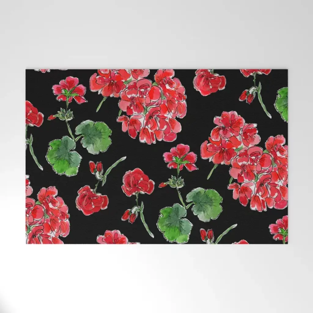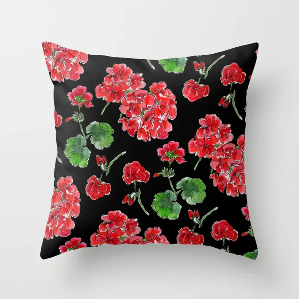 Red Geranium With Black Background Throw Pillow