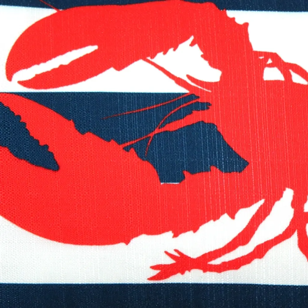 This versatile nautical style pillow features a timeless bright red lobster placed against the classic marine theme of white and navy stripes. This colorful throw pillow is a wonderful summertime accent for your home. Made from a linen-like indoor/outdoor fabric, it will work perfectly in a variety of living spaces from the patio or deck to the living room or a child's room. Use the Red Lobster Throw Pillow to add a splash of color or to tie-in similar and complementary colors in your space. Size: 12"x19" Rectangular Fabric: 100% Polyester Design printed on front only. Back in plain white. Color matched zipper closure Hand wash cold separately Made in Canada: Designed and made in Pillow Decor's Vancouver workroom.