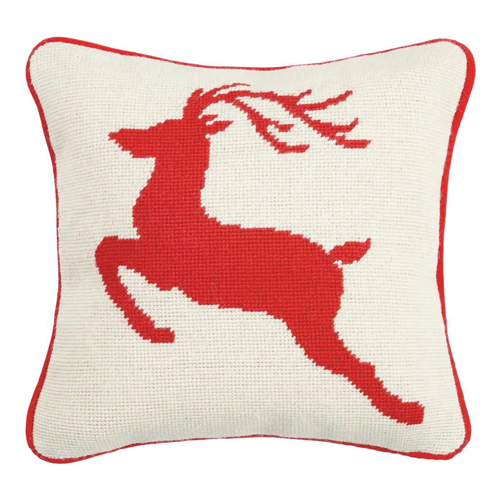 Cozy up your holiday decor with our ivory throw pillow focused on a single black silhouette of our signature reindeer. Featuring a kilim weavea tight interweaving of warp and weft strands often used to make carpetsthe square pillow highlights the angled shapes, heathered color and rustic texture characteristic of this celebrated weaving technique. Our exclusive pillows include your choice of a plush feather-down or lofty down-alternative insert.