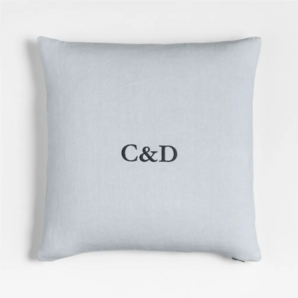 Relaxed Linen 20"x20" Pale Blue Layering Throw Pillow With Down-Alternative Insert