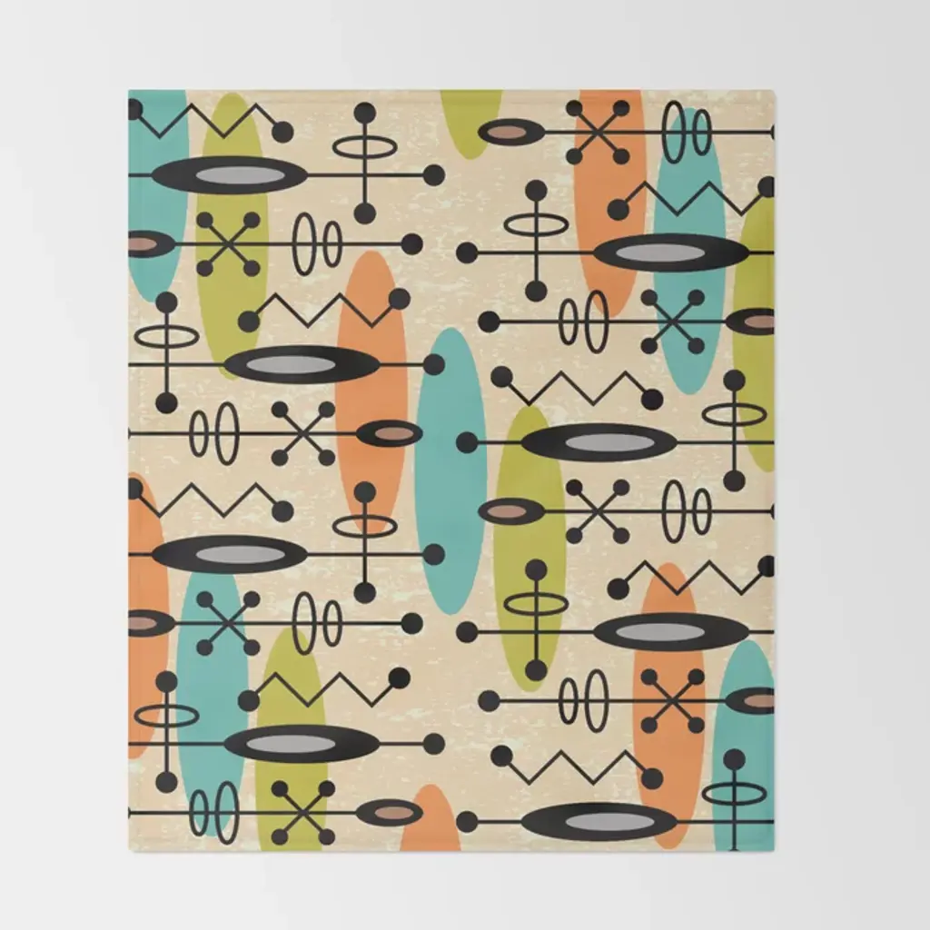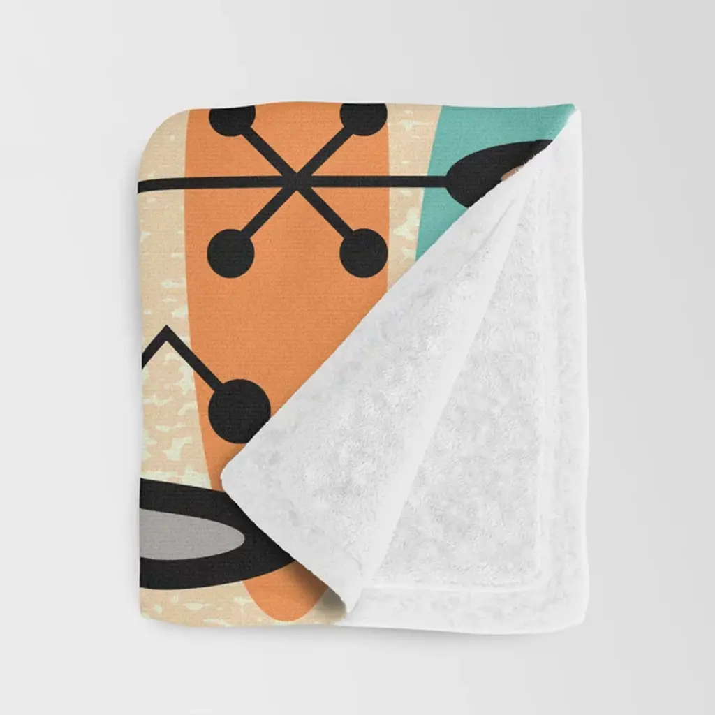 Retro 1950s Style Mid Century Modern Atomic Design 271 Googie Orange Blue And Green Throw Blanket