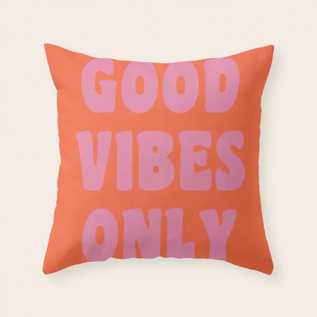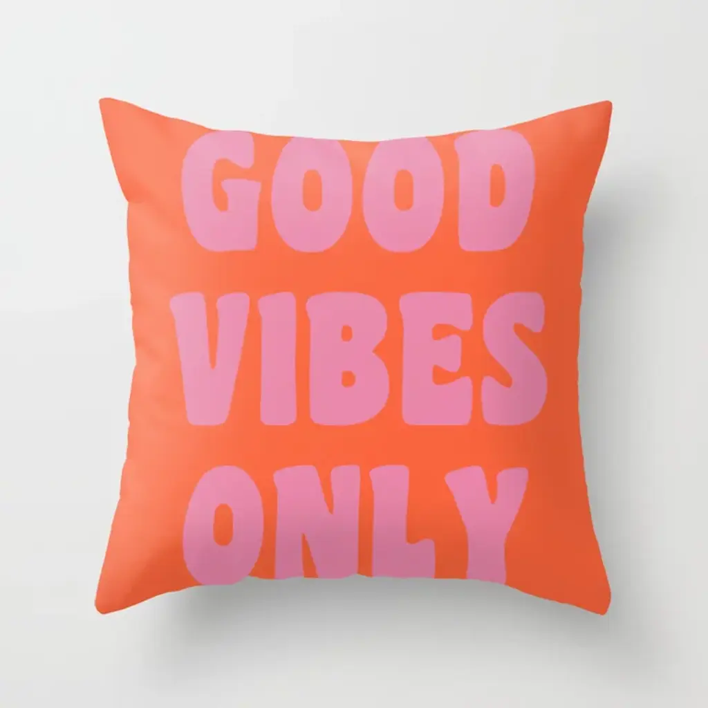 Retro Good Vibes Only Lettering In Pink And Orange Throw Pillow