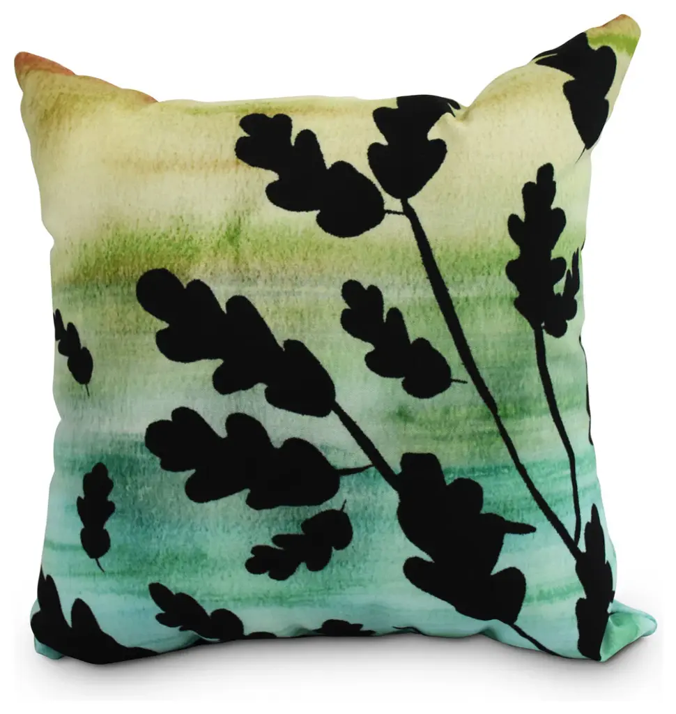 Retro Leaf, Floral Print Indoor/outdoor Pillow, Dark Green,16 X 16-Inch
