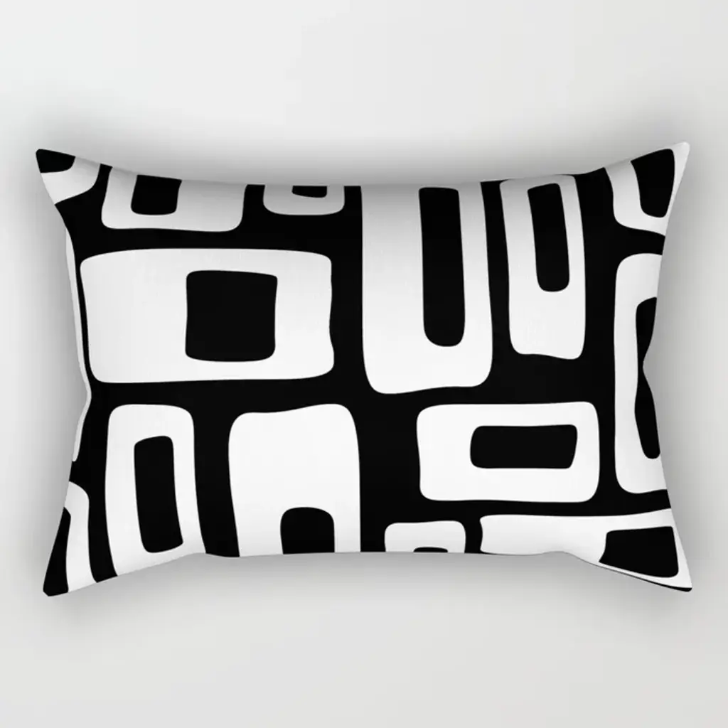 Retro Mid Century Modern Abstract Pattern 336 Black And White Throw Pillow