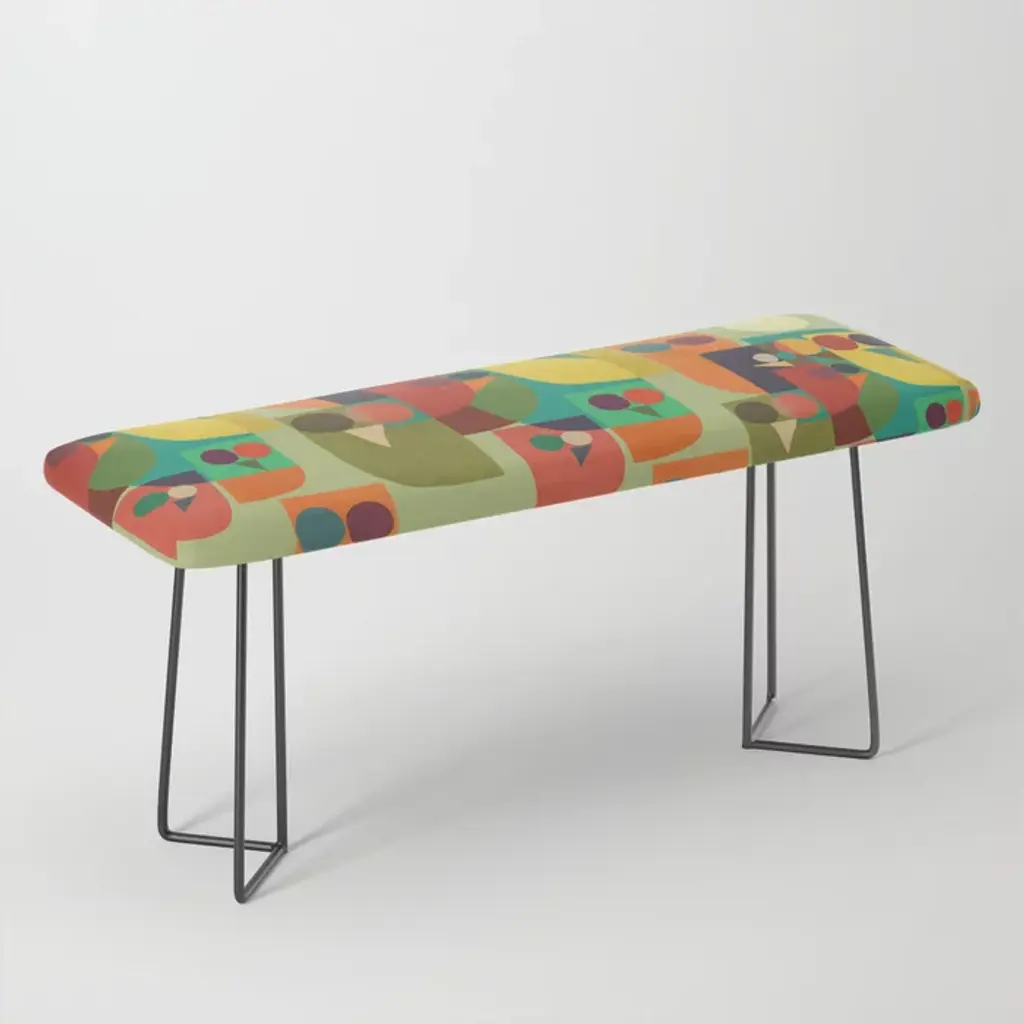 Retro Mid Century Modern Abstract Pattern 921 Googie Orange Chartreuse Turquoise Bench