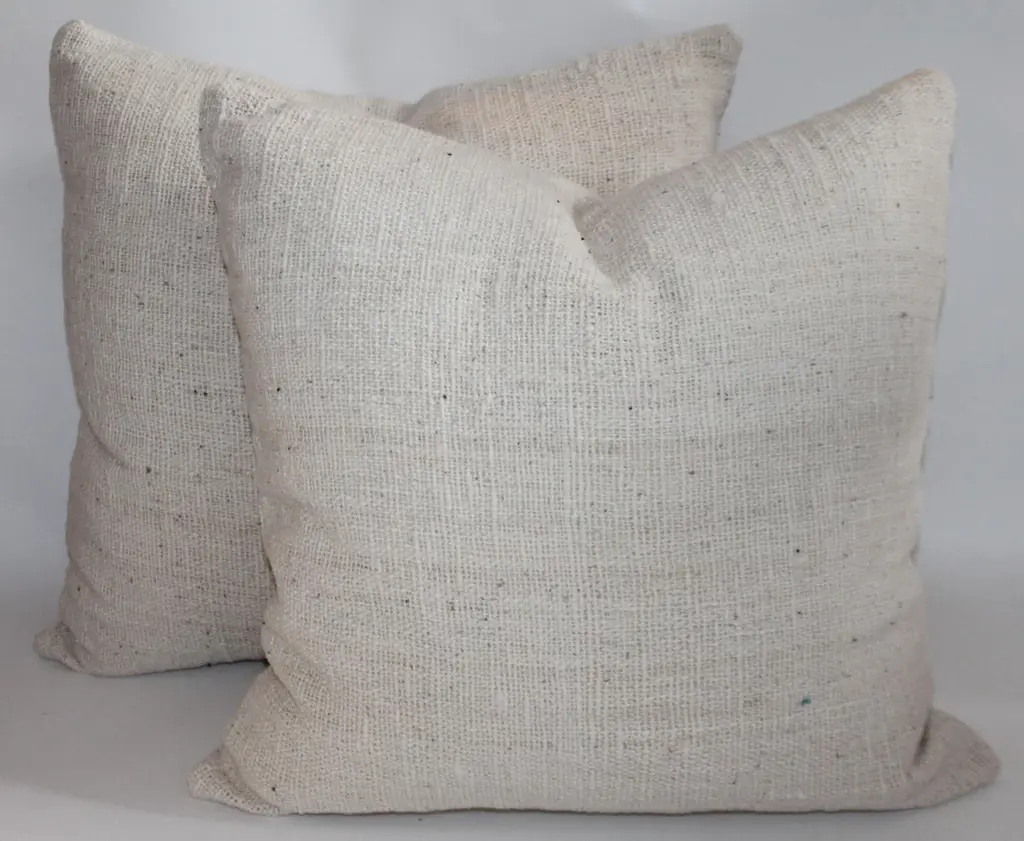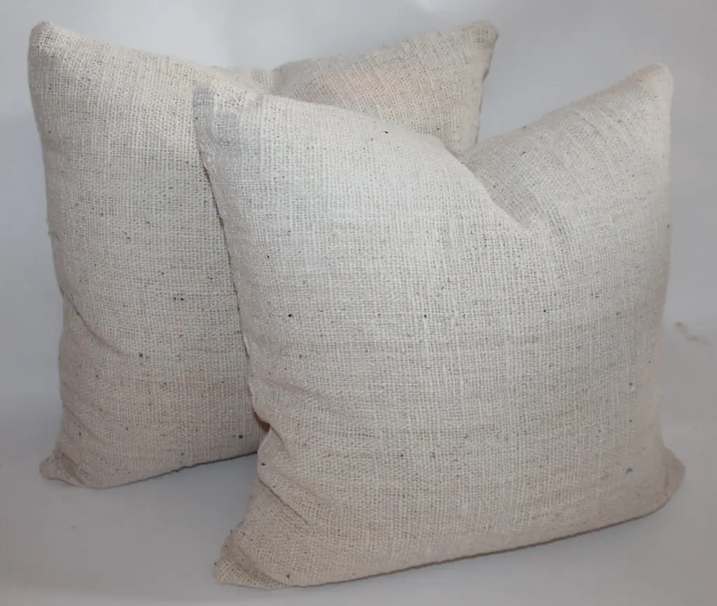 19th century homespun linen pillows that are reversible and down & feather fill. Sold as a group of four pillows These pillows are so organic and natural woven fabric.