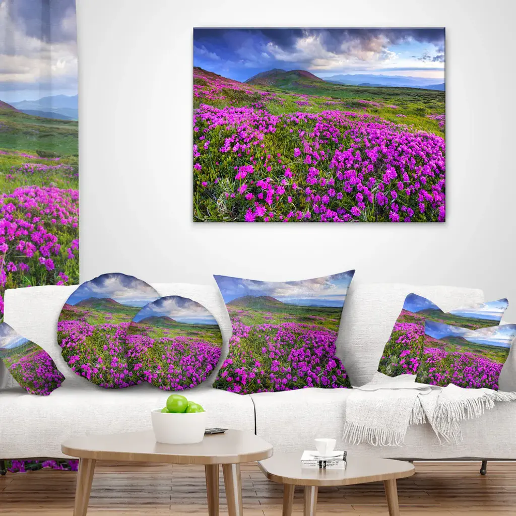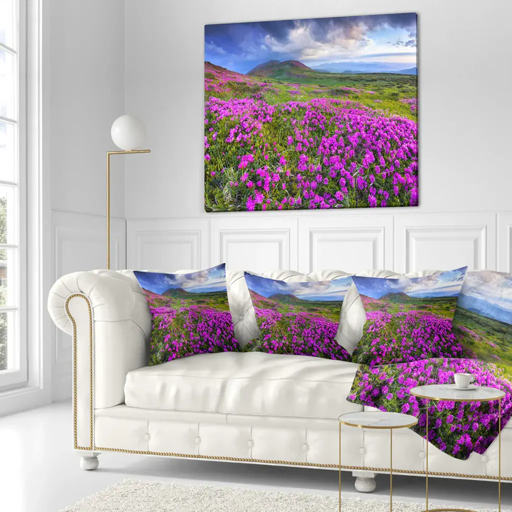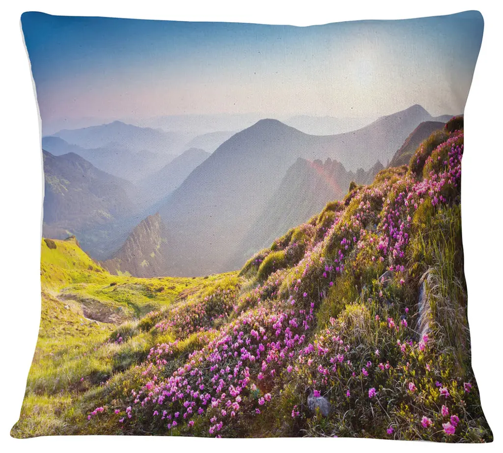 Rhododendron Flowers In Mountains Landscape Photography Throw Pillow, 18"x18"