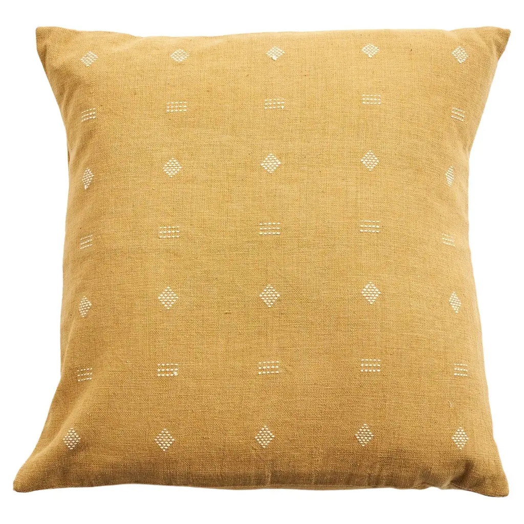 The block-printed geometric motif on the front of this pillow will bring timeless artisanal elegance to a sofa, a chaise, or a bed. The down fill ensures luxe comfort. Solid back.
