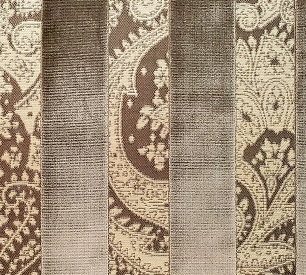 The Robert Owl Stripe Velvet 22x22 inch pillow features a wonderfully soft deep taupe stripe pattern set against a jacquard weave with a subtle paisley design in a contrasting cream and taupe. The effect is a stunning and luxurious pillow that will elevate any room to a whole new level. The pillow is backed with a soft, solid color beige velvet fabric. Size: 22"x22" Square Fabric: 60% Polyester/40% Viscose Back is solid color beige velvet Knife edge seams Hidden zipper closure Dry Clean Recommended Made in Canada: Designed and made in Pillow Decor's Vancouver workroom.