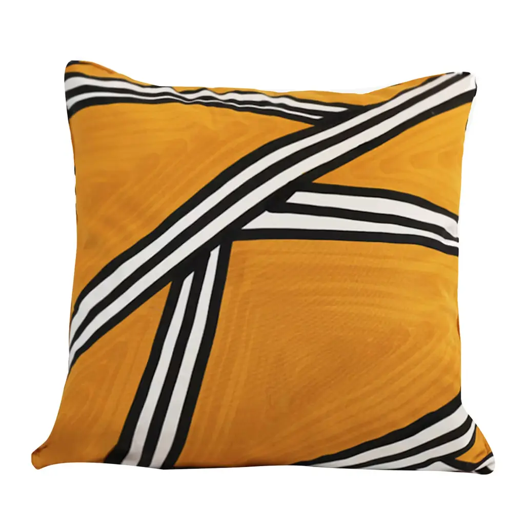 This elegant cushion has a down insert with a cover in 100% cotton decorated with a striking pattern of diamonds in vivid orange over a white background.