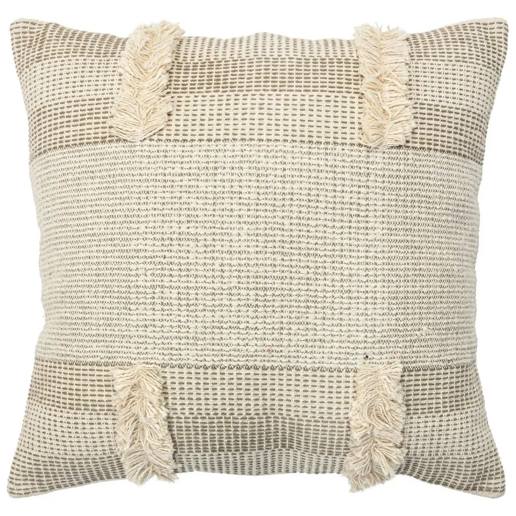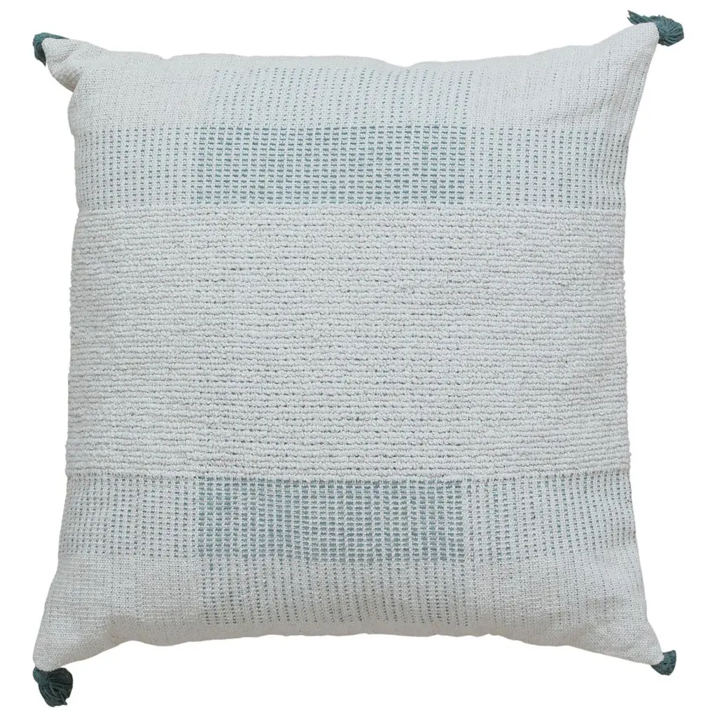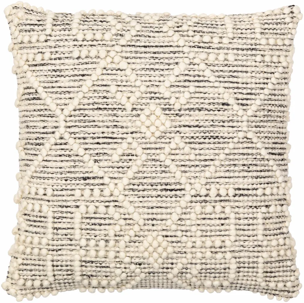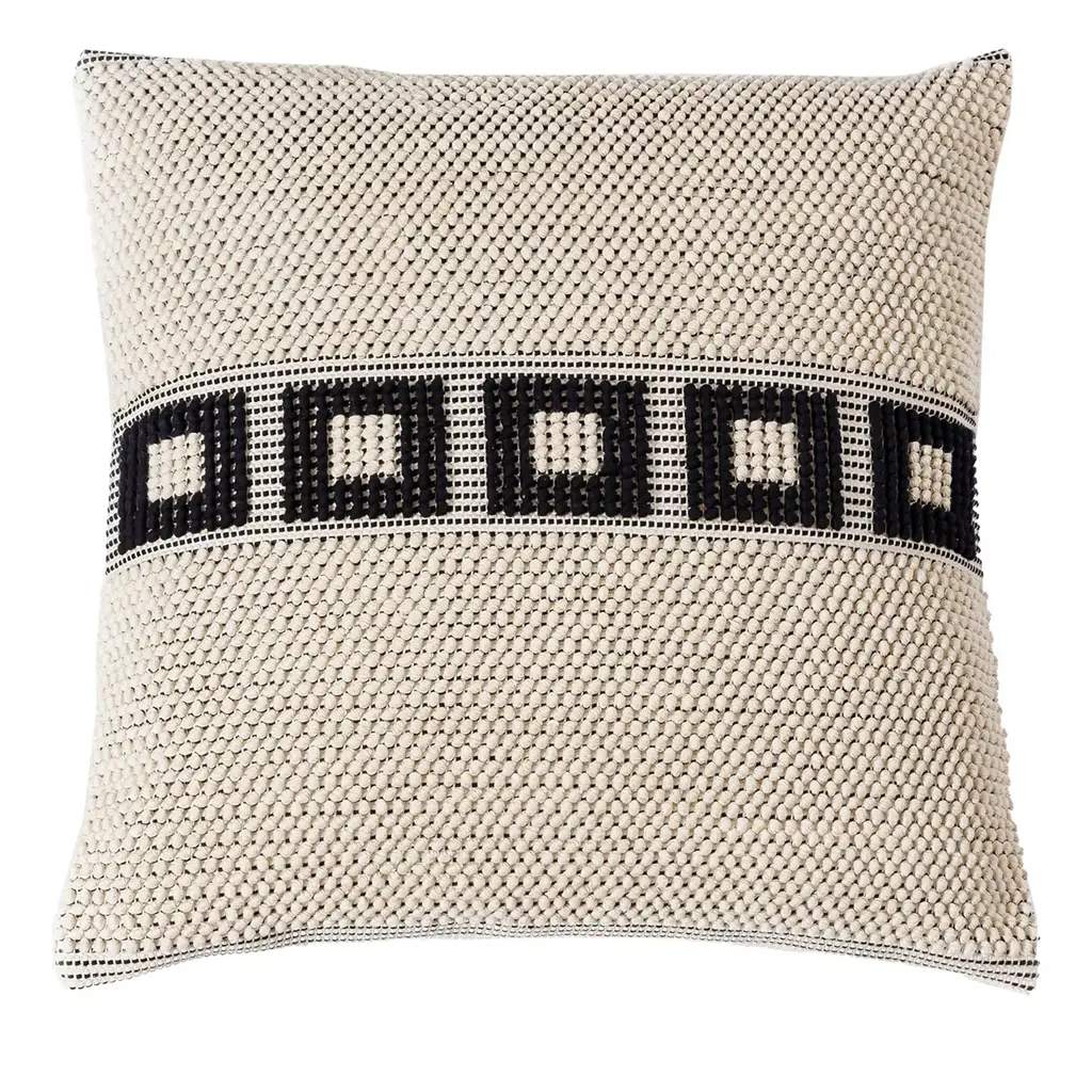 This artful cushion, minutely woven by hand blending cotton threads in ecru, black, and turquoise, will bring an authentic piece of Sardinia into any modern home. Its precious value is owed to the peculiar artisan technique followed in its crafting, named "pibiones" (the Sardinian word for grapes) due to the whimsical grape-like shape of the stitches composing the weft. Turquoise and black bands alternatively flank the raised, black pattern of rhombuses in the center.