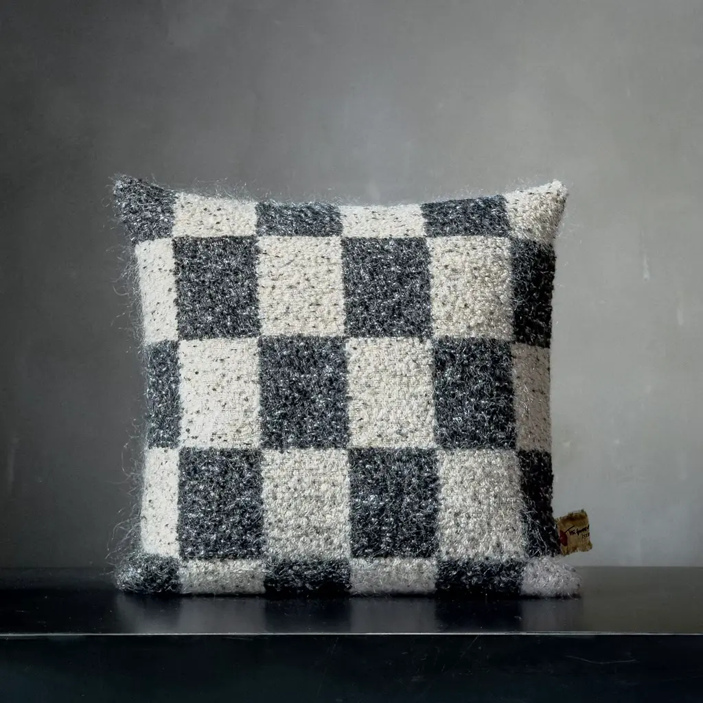 Ronce Square Checkered Black & White Mohair Cushion