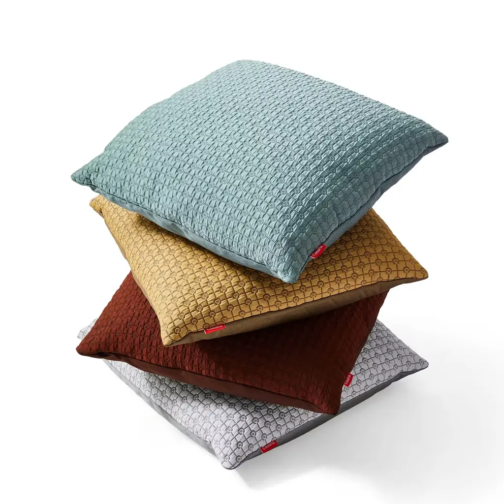 Decorative cushions with four motifs: different personalities that, through splendid geometries and chromatic signatures, in the interconnection between shapes and colors, between places and people, and between objects, make use of nuances and juxtapositions to lend dynamism to the furnishings. The use of a modular grid balances the graphic composition, creating visual order.