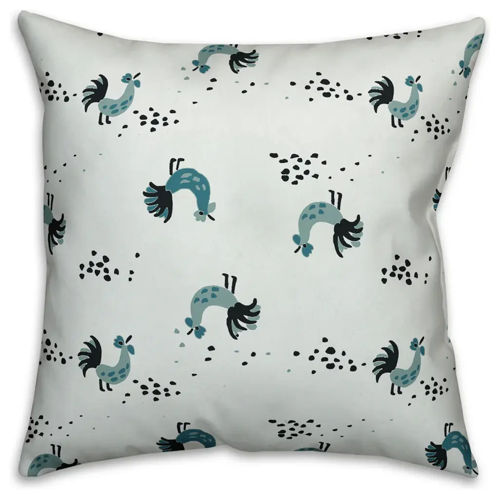 Rooster Pattern, Blue Outdoor Throw Pillow, 16"x16"