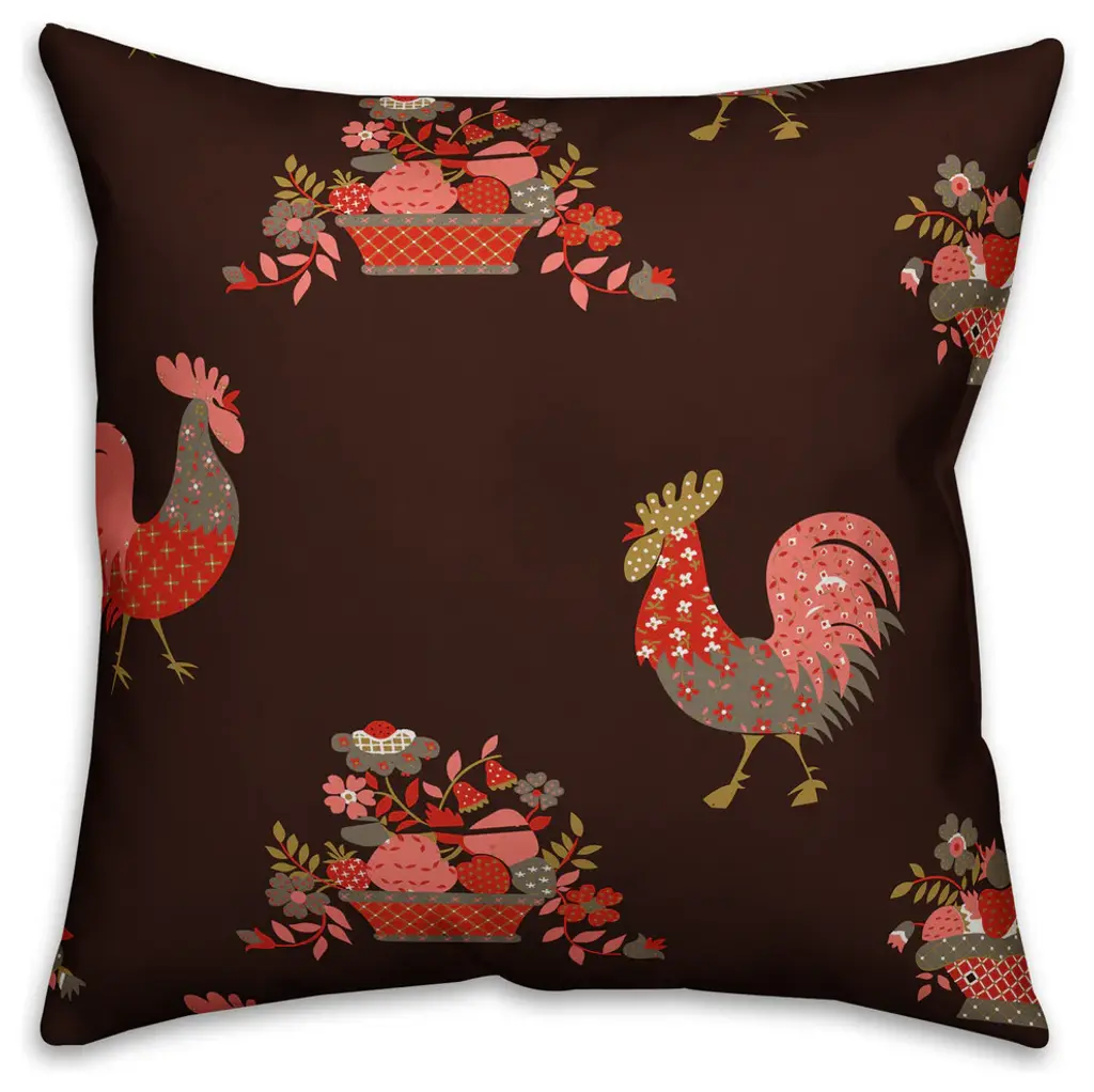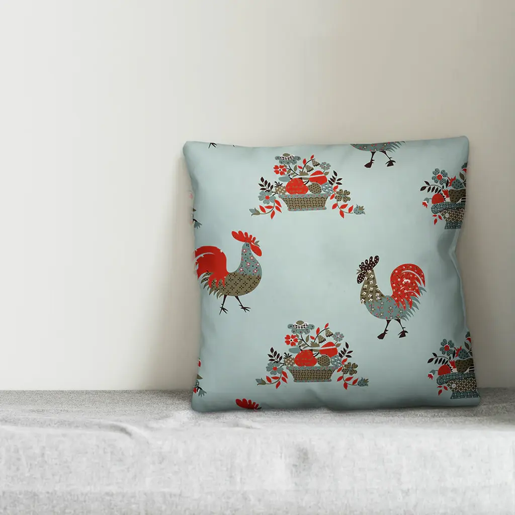 Rooster Pattern, Blue Outdoor Throw Pillow, 20"x20"