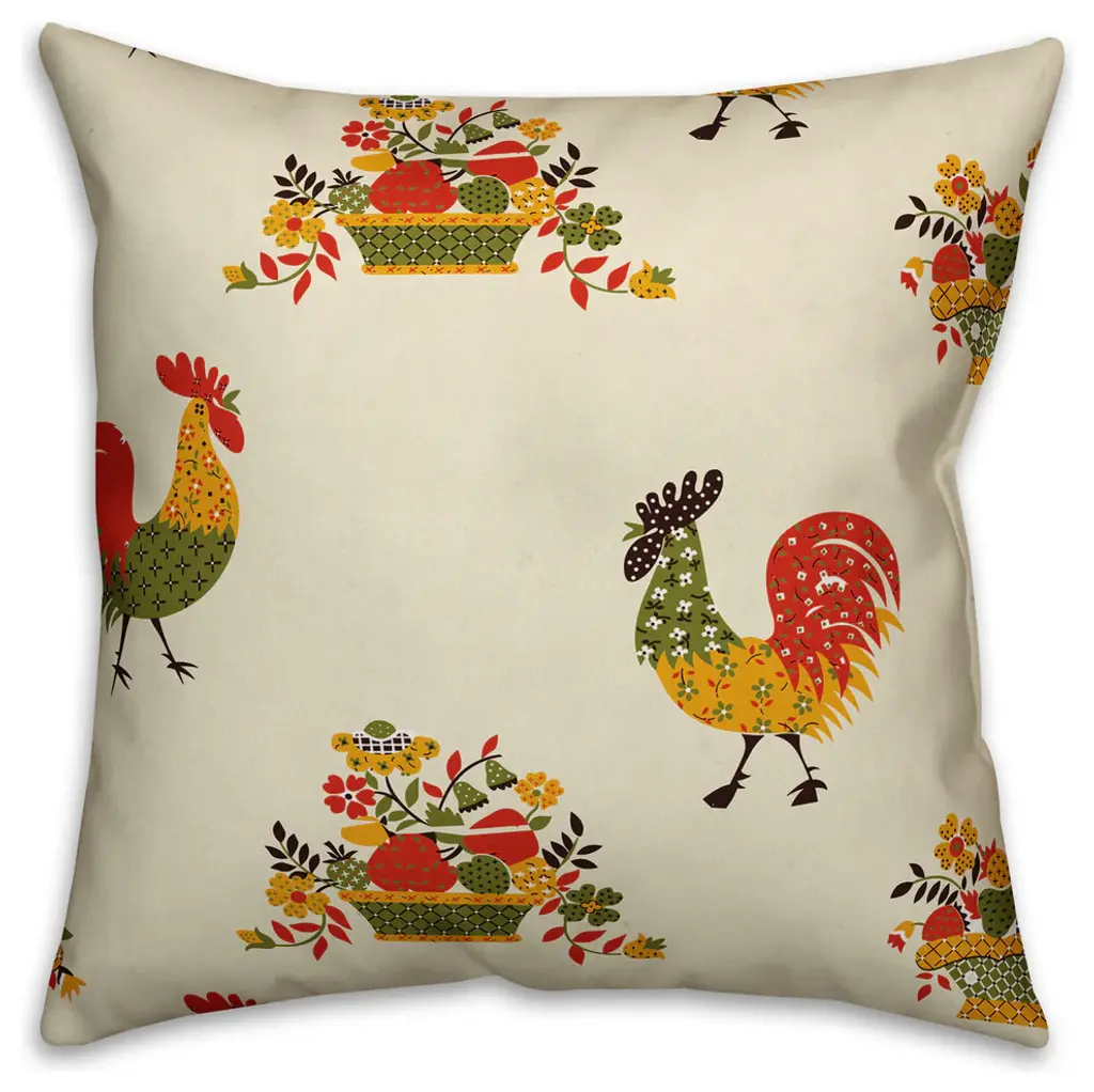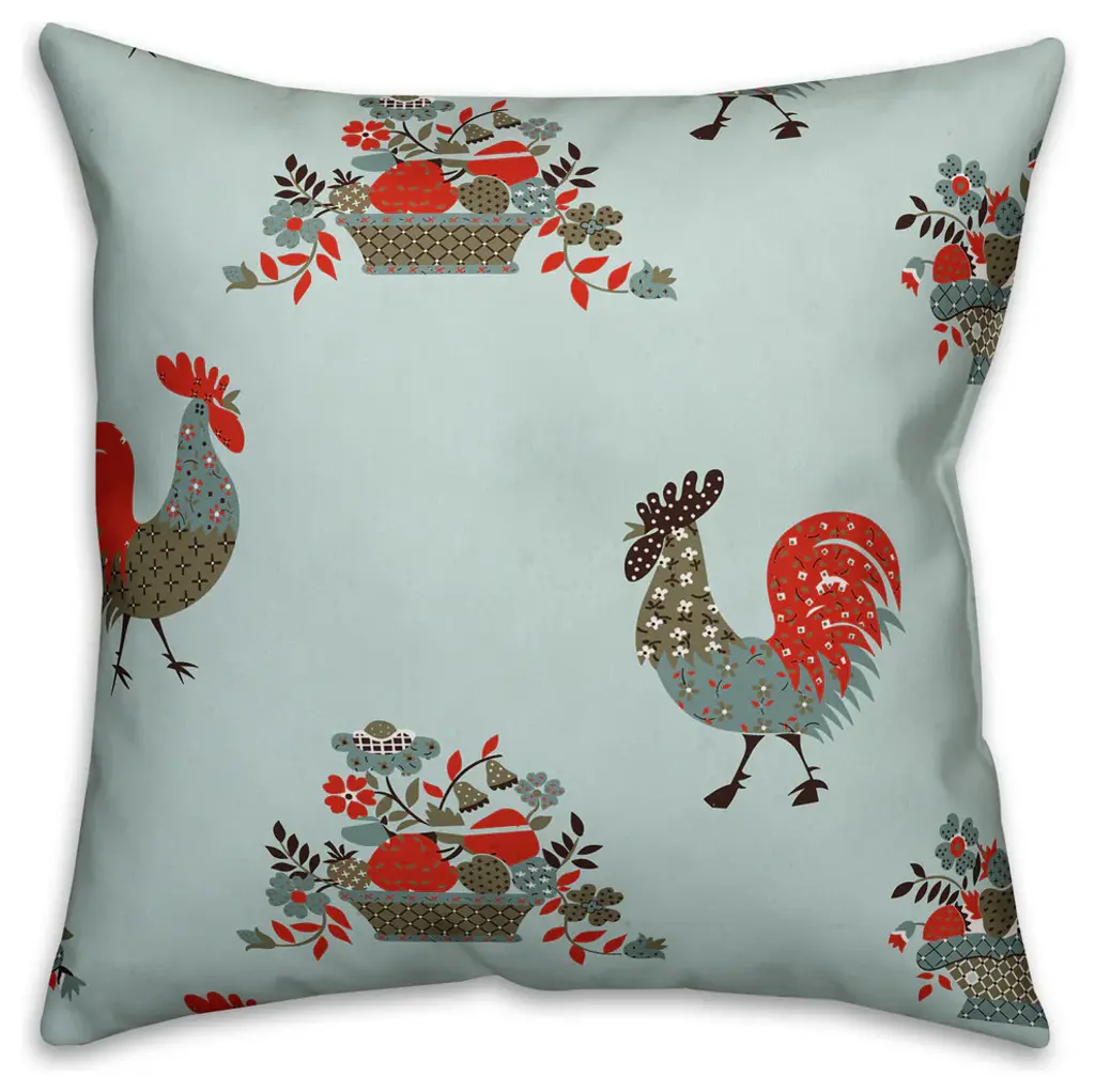 Rooster Pattern Outdoor Throw Pillow, 18"x18"