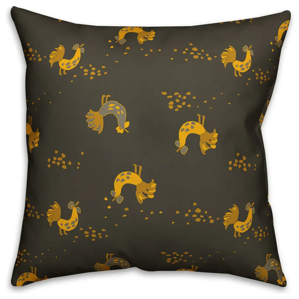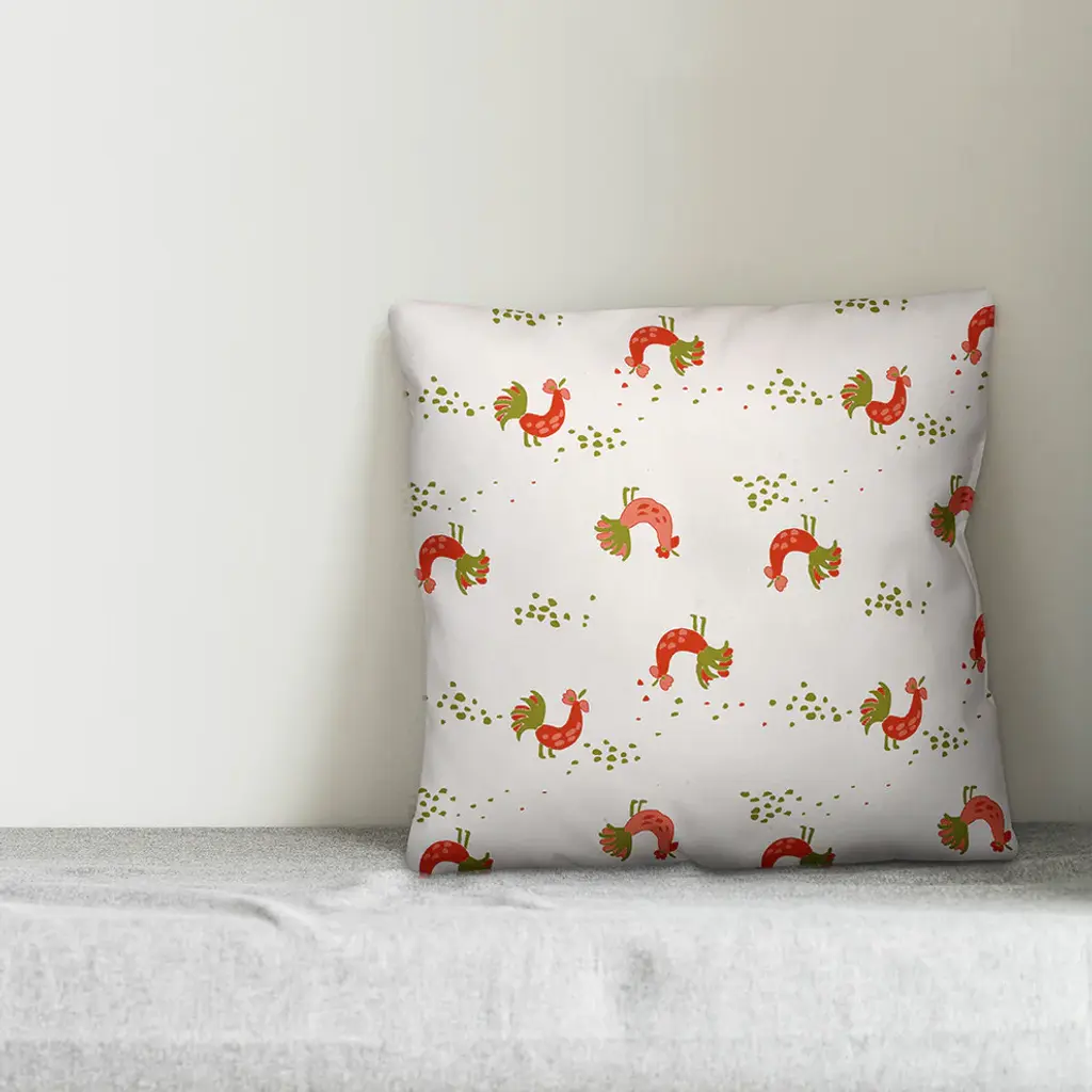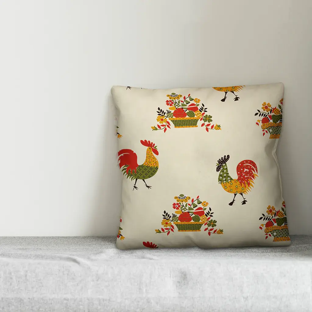 Rooster Pattern, Red And Green Outdoor Throw Pillow, 18"x18"