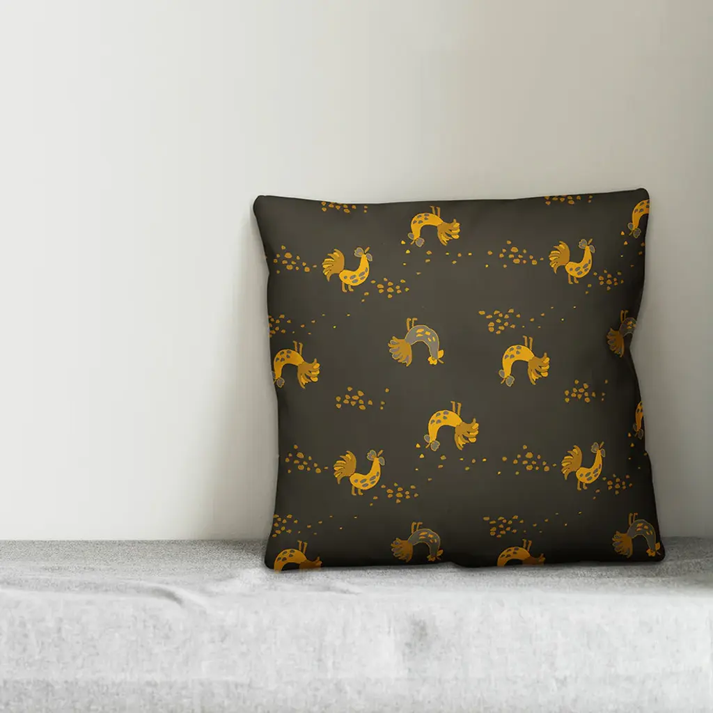 Rooster Pattern, Yellow Outdoor Throw Pillow, 16"x16"