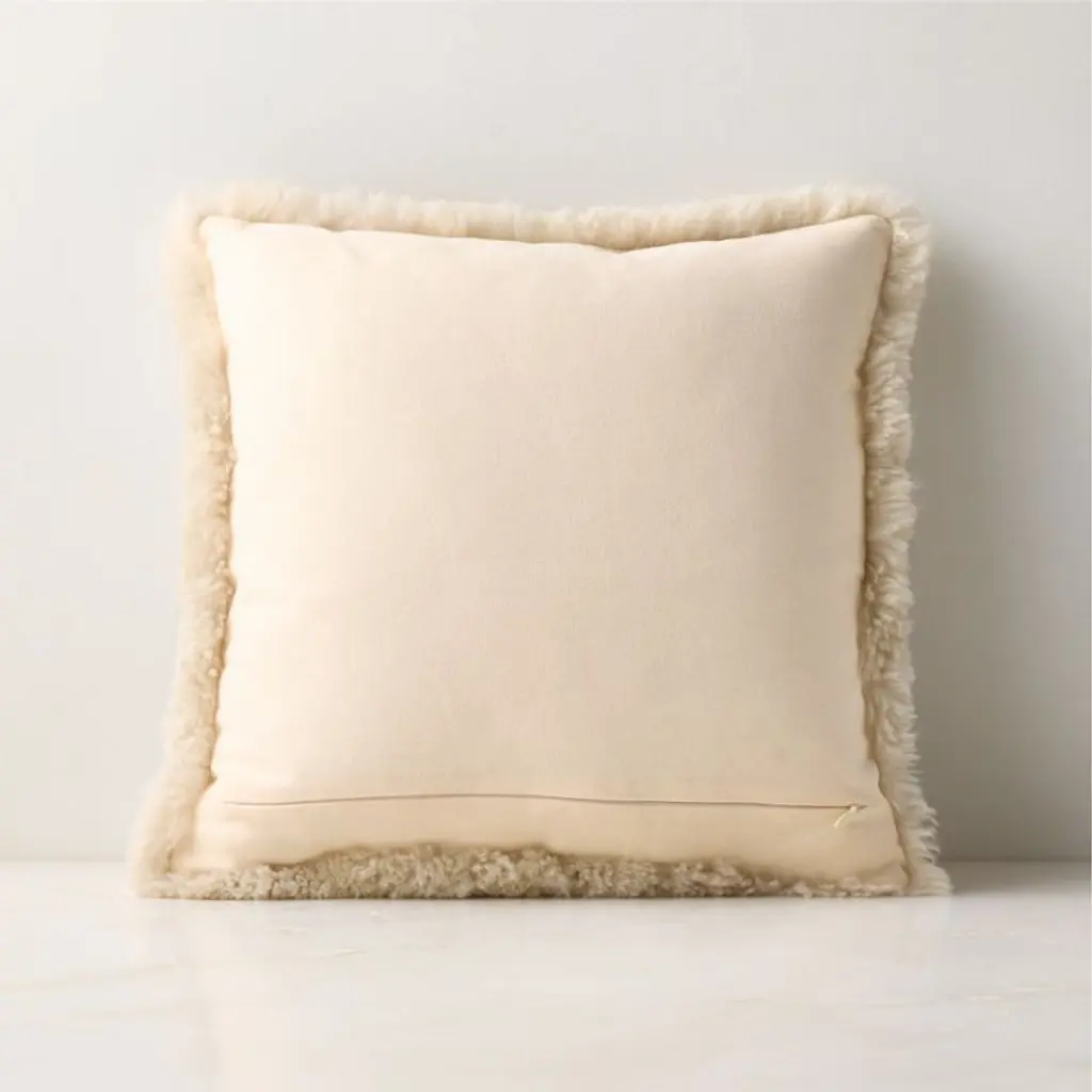 Crafted from 100% sheepskin, warm white shearling pillow offers a dense, plush texture that imparts warmth and dimension. Each piece is one of a kind, with subtle variations in color that highlight the natural beauty of real shearling. A durable cotton duck back provides structure, while a hidden zipper closure ensures a seamless finish. CB2 pillows include a pillow insert in your choice of feather down or down alternative. CB2 exclusive.