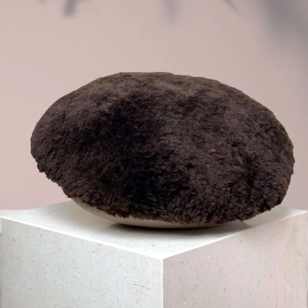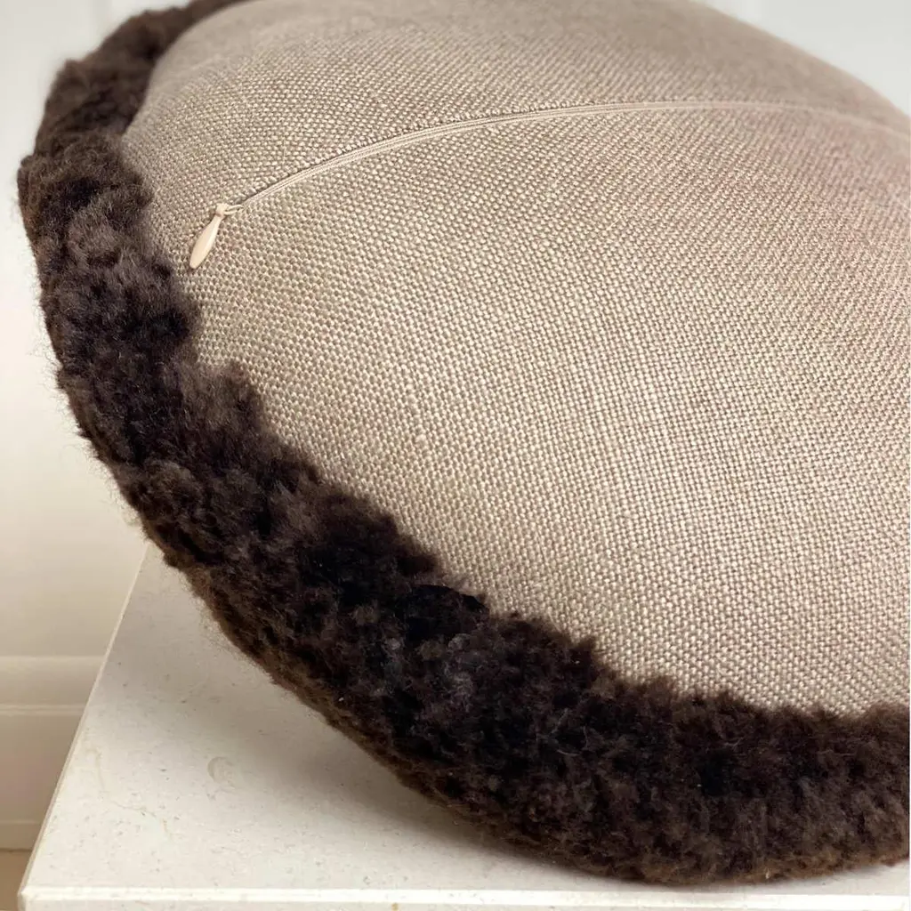 Inject sumptuously inviting textures to your space with this luxurious, round brown pillow. Featuring a velvet-like pure wool pile, exquisitely hand-crafted from double-shorn, New Zealand lambskin.Preserving the organic sheep wool coloring forming irresistible warm and chocolate brown hues, making each pure wool pillow cover remarkably beautiful and unique.Translating sustainable, luxurious, and bespoke design each chestnut brown pillow comes with a silky plush lambskin front, finished with a high-end European linen reverse, and fitted with a pure feather insert for additional luxe comfort. Crafted with craftsmanship, and available in assorted and custom-made pillow sizes sheepskin pillows, this collection of shearling pillows is designed and made in Australia. The shearling pillows are sold as single units and can be customized to any shape or size.Features:Double Shorn New Zealand LambskinColour: Chestnut / Natural BrownFront sided sheepskinReverse, high-end pure linenOverall dimensions: 30x30cmWool pile: approx 2cm / 1"Made in Australia Feather cushion insert includedNatural product:It needs to be celebrated that this shearling pillow is made from 100% natural products. Color variations and wool pile variations may occur between each sheepskin pillow.Product care for your Sheepskin Pillow:Do not wash or submerge into waterShake out often to remove dust or give a light vacuumSpot clean only with gentle wool detergent.Professional dry clean only.