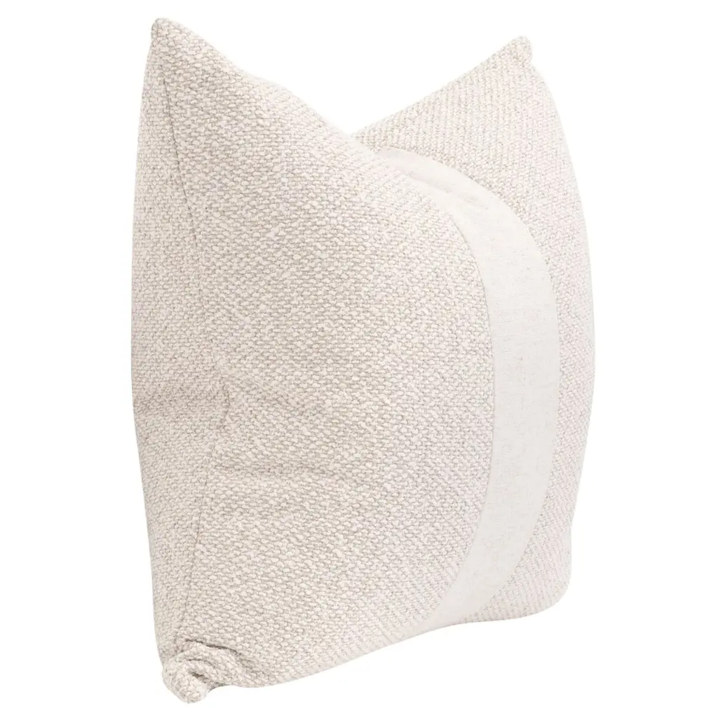 The Astria 22" Pillow will liven up any furnishings it is paired with. The pillow boasts a luxurious blend of fabric with a performance textured stripe at the center, offering a subtle contrast to the soft and elegant material. Filled with 100% down, it provides optimal comfort and support. With its high-quality and performance fabric, the pillow is easy to clean and maintain a like-new appearance. It measures 22" wide, 5" deep, and 22" high, which is an ideal size to cozy up to. The knife-edge detail offers a unique and clean design, making it an ideal addition to any contemporary or modern decor.
