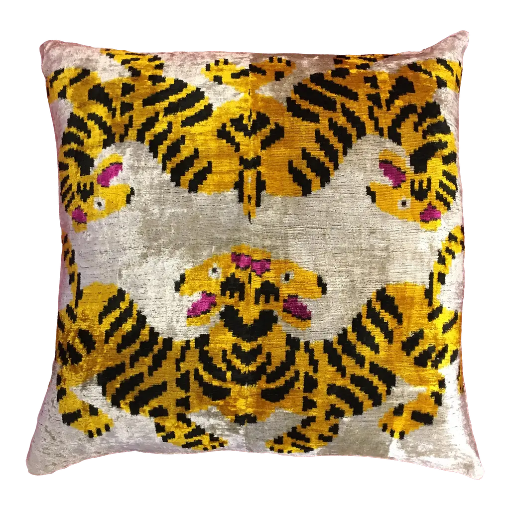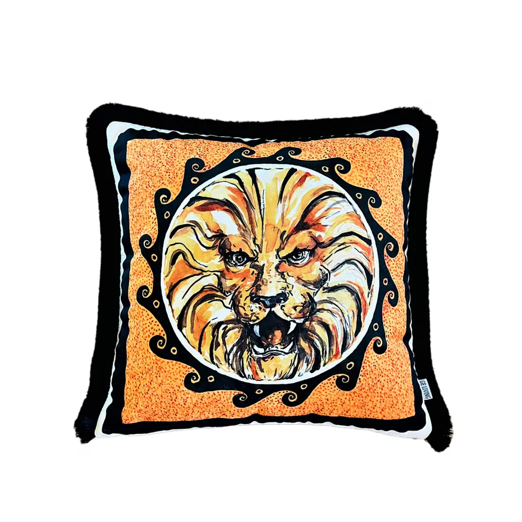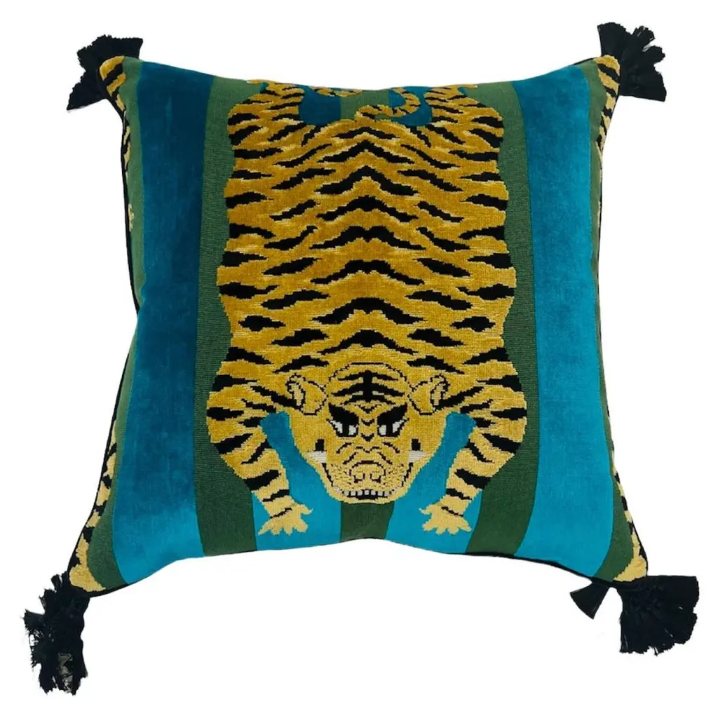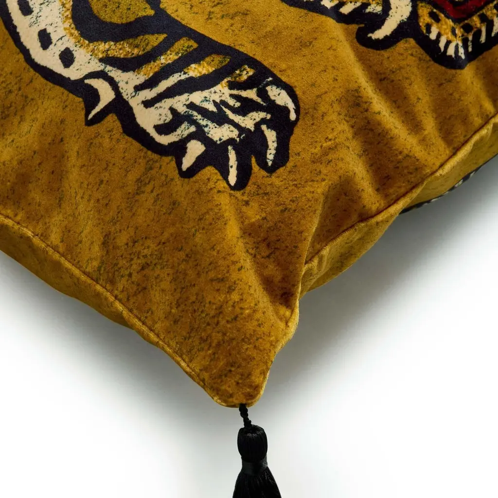 Elevate your sofa from simple to statement with this large gold velvet cushion. Featuring SABER, the Tibetan tiger, this tasselled design will delight animal lovers and interiors enthusiasts alike. House of Hackney donates a portion of the proceeds from this cushion to Panthera, an organisation devoted to the conservation of the world's wild cats.