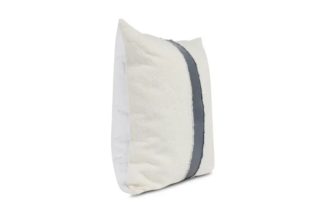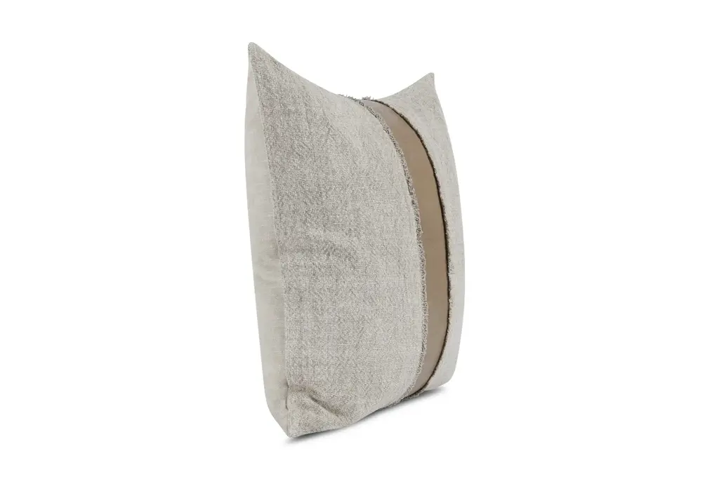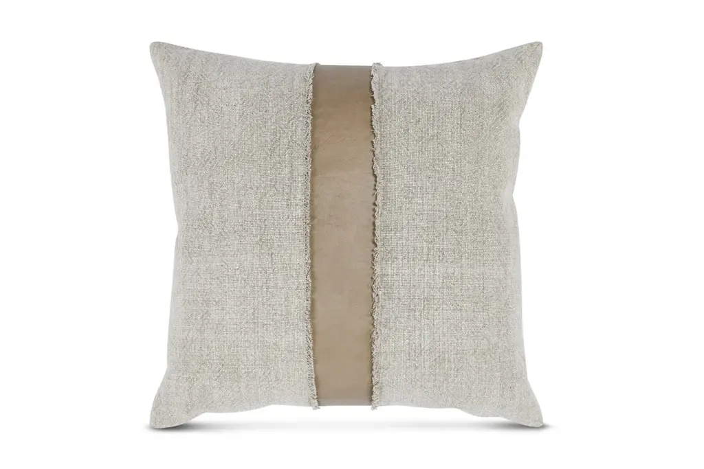 The Sadie Toss Pillow brings a contemporary touch to any style of decor. Perfect for displaying on a sofa, chair or bed, this throw pillow features a unique genuine leather stripe down the center with a frayed fringe detail along either side of the stripe. The front fabric portion of the pillow is made with a soft cotton linen blend, while the back is 100% cotton. A feather and down insert ensures this toss throw pillow has a plump and supportive feel while still being soft and inviting. Available in two colorways, this unique modern home accent piece looks beautiful in any home. Choose the Natural colorway for a rustic chic style, or get these decorative pillows in Ivory to achieve an elevated, coastal-inspired look. With its multi-textured surface, either colorway pairs well with a wide variety of other couch pillows and throws, including knit and faux fur designs. The neutral tones also look great on any of our stunning fabric options, so feel free to get creative when choosing the upholstery for a new Apt2B sectional, sofa or chair. This item is set to ship quickly and is covered by our 100-day guarantee. Get in touch with our best-in-class customer care team if you need to reach out with any questions before placing your decorative pillow order.