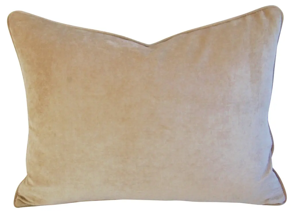 Pair of large custom-made pillows in unused vintage 100% linen fabric printed with zebra motif. New sand-colored velvet fabric backs and matching cord trim. Invisible zipper closures and new generous goose down-and-feather inserts.