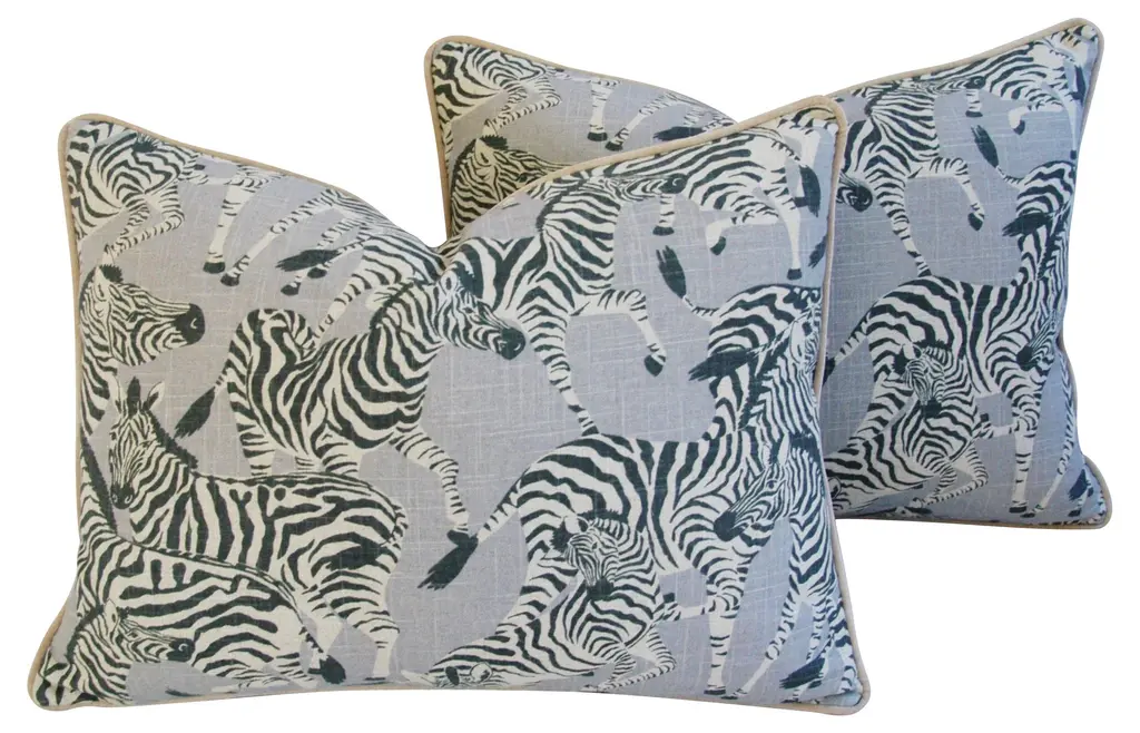 Safari Zebra Linen/velvet Pillows, Pair