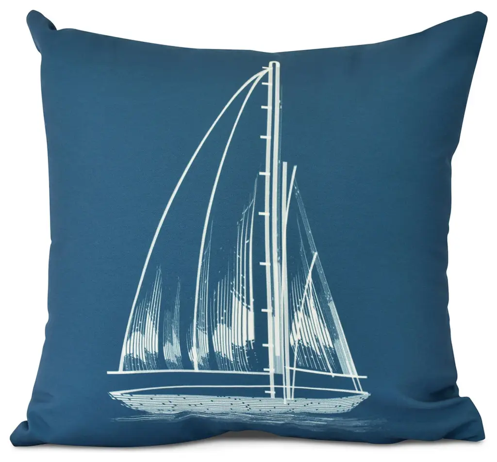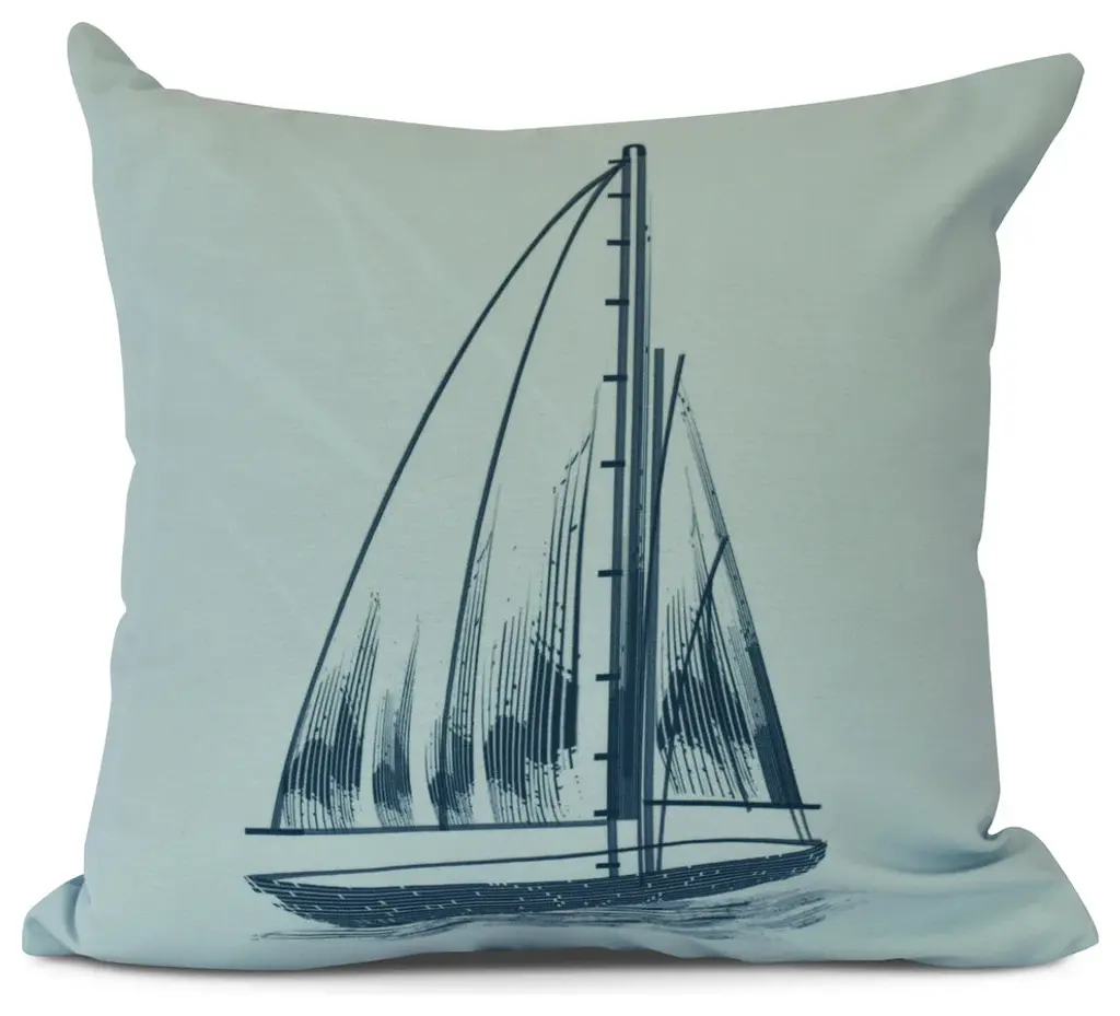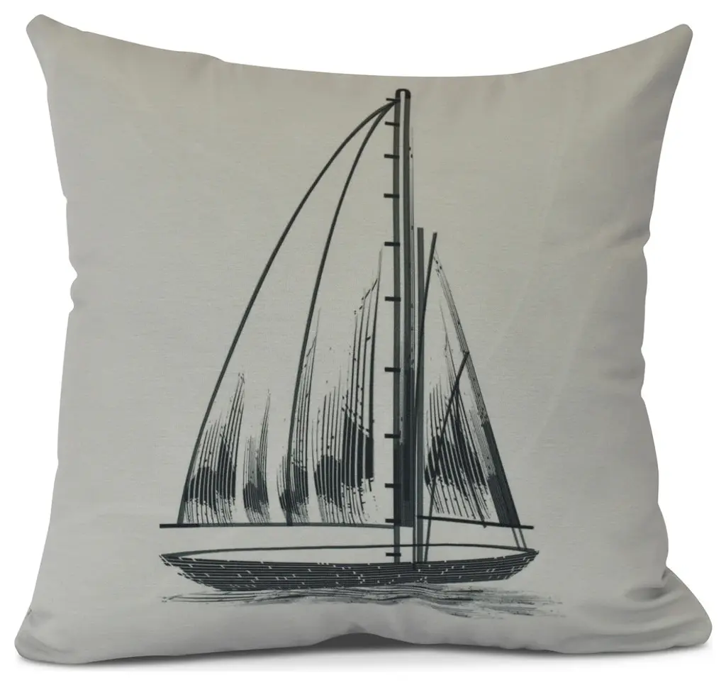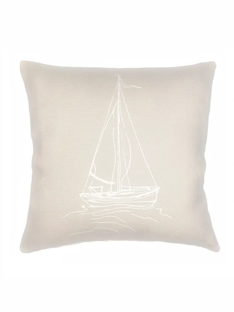 Sailboat, Geometric Print Outdoor Pillow,cream,20 X 20 Inch