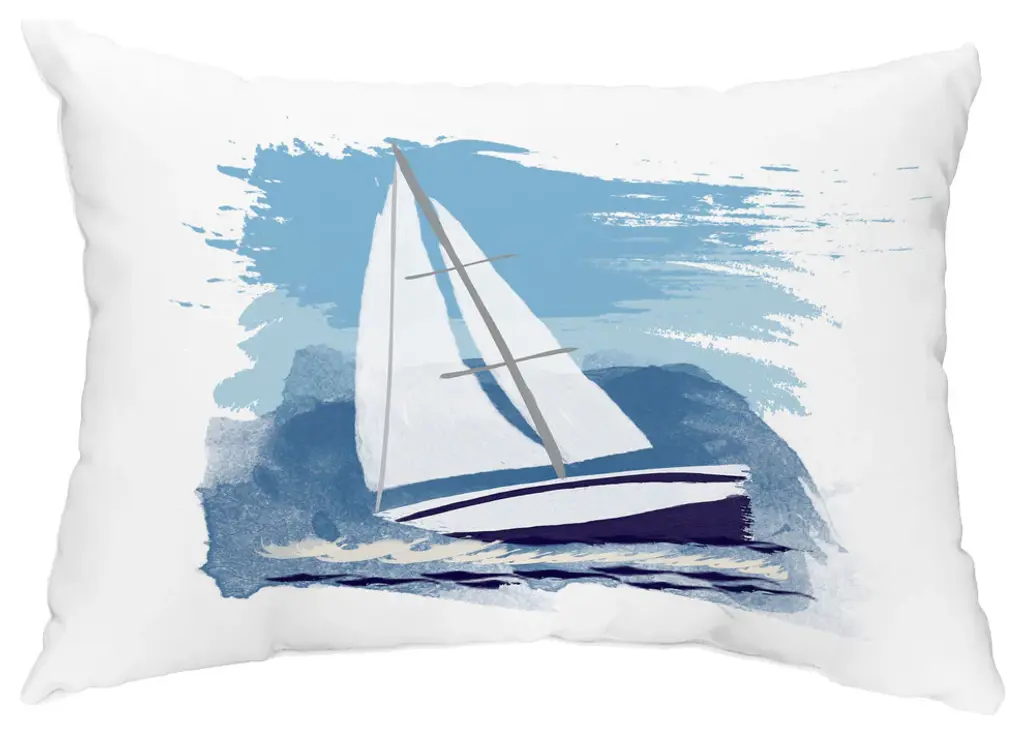 Sailboat, Geometric Print Outdoor Pillow,light Blue,20 X 20 Inch