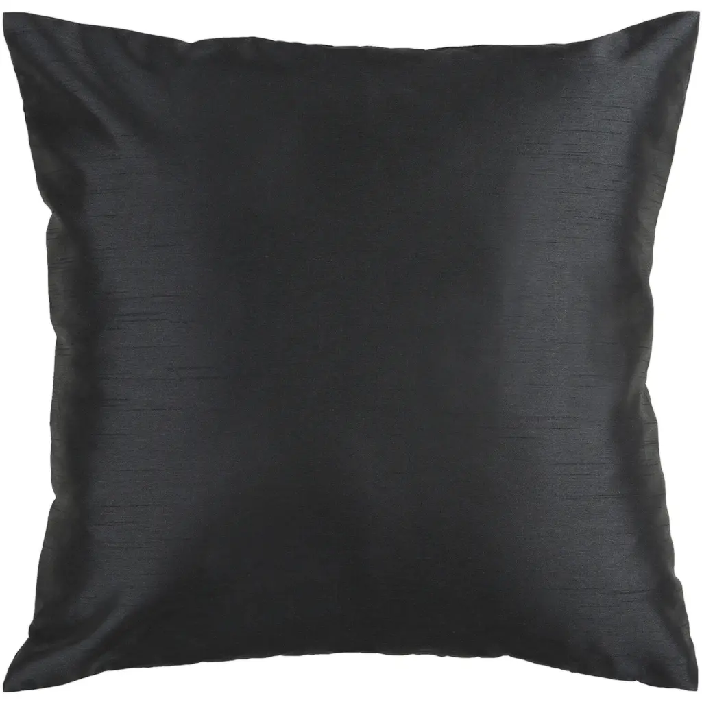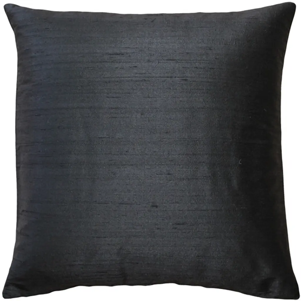 A classic deep black dupioni silk throw pillow. Elegant and sophisticated, this 20 inch square black silk pillow is equally suited to a formal living room, bedroom, or more casual living space. Size: 20"x20" Square Fabric: 100% Dupioni Silk Same fabric, front and back Knife edge seams Color matched zipper closure Dry clean only Made in Canada: Designed and made in Pillow Decor's Vancouver workroom.