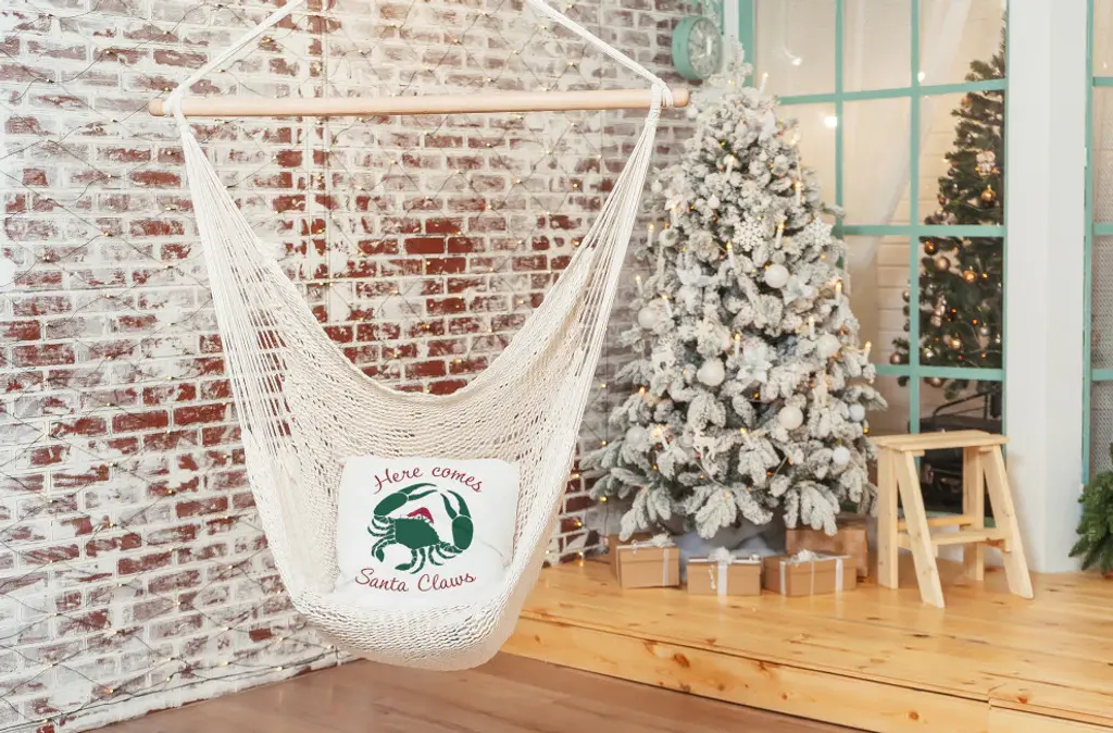 Celebrating Christmas at the beach? Then enjoy a Santa Claws Crab Pillow from our Coastal Christmas Collection! This indoor/outdoor pillow is the perfect addition to add color and cheer to your porch, deck or patio! This decorative pillow is printed on both sides and crafted with a soft, durable polyester exterior, and filled with down alternative for a crisp look and a comfortable sitting experience. The fabric is resistant to weather, mold, and mildew so you can accentuate your indoor or outdoor decor. It is sewn closed with a knife edge and can be easily spot cleaned or dry cleaned. This Collection includes prints and patterns with the power to fill your home with holiday spirit!
