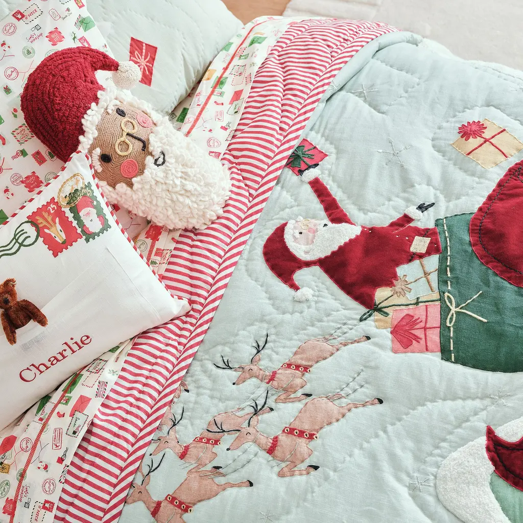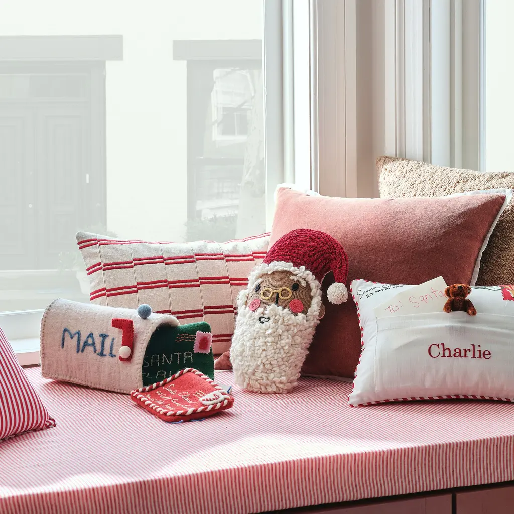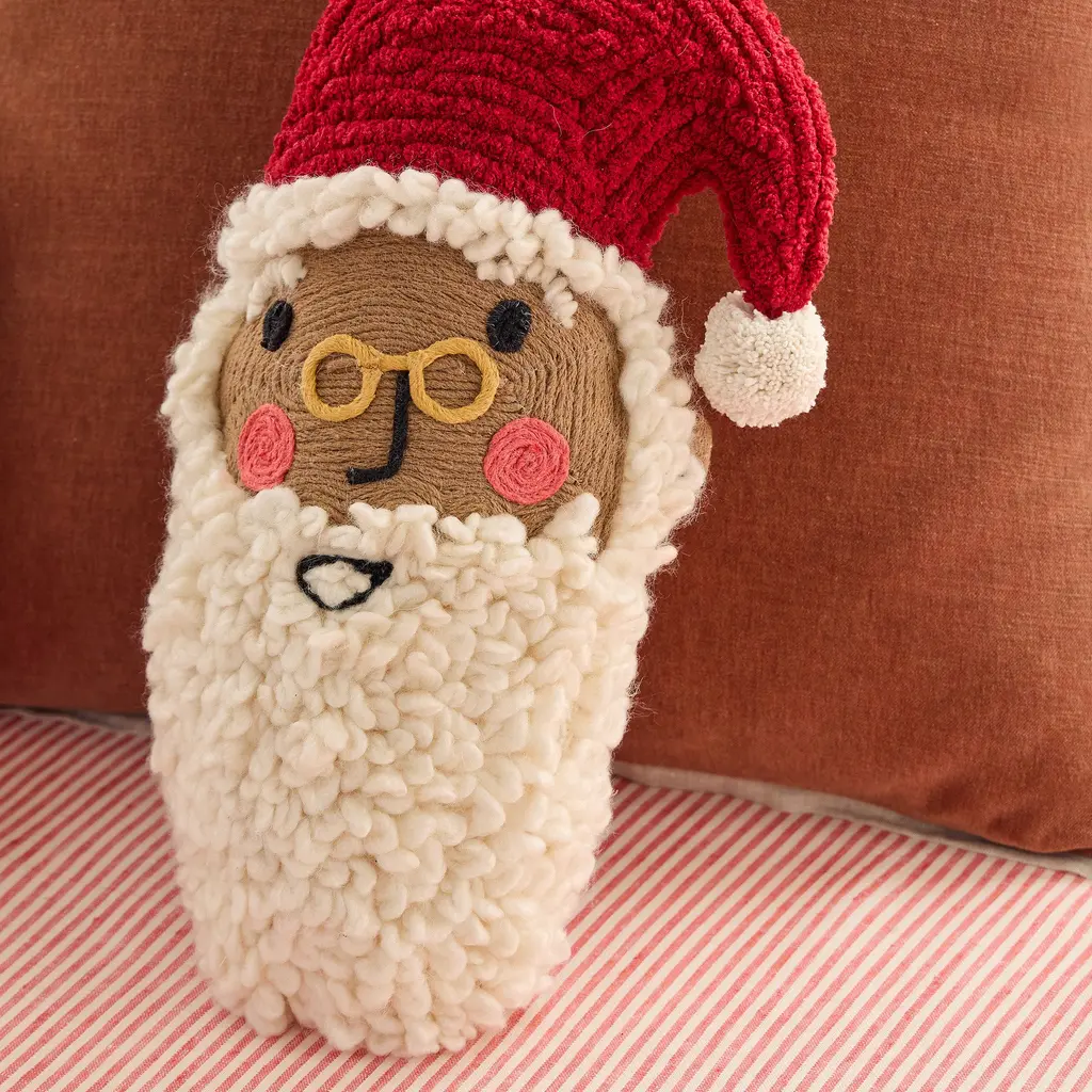 The adorable Santa design. This festive pillow is designed to be extra-huggable. Adds cute, colorful charm to a bed, sofa or reading nook. Essential cozy cheer for the holidays.