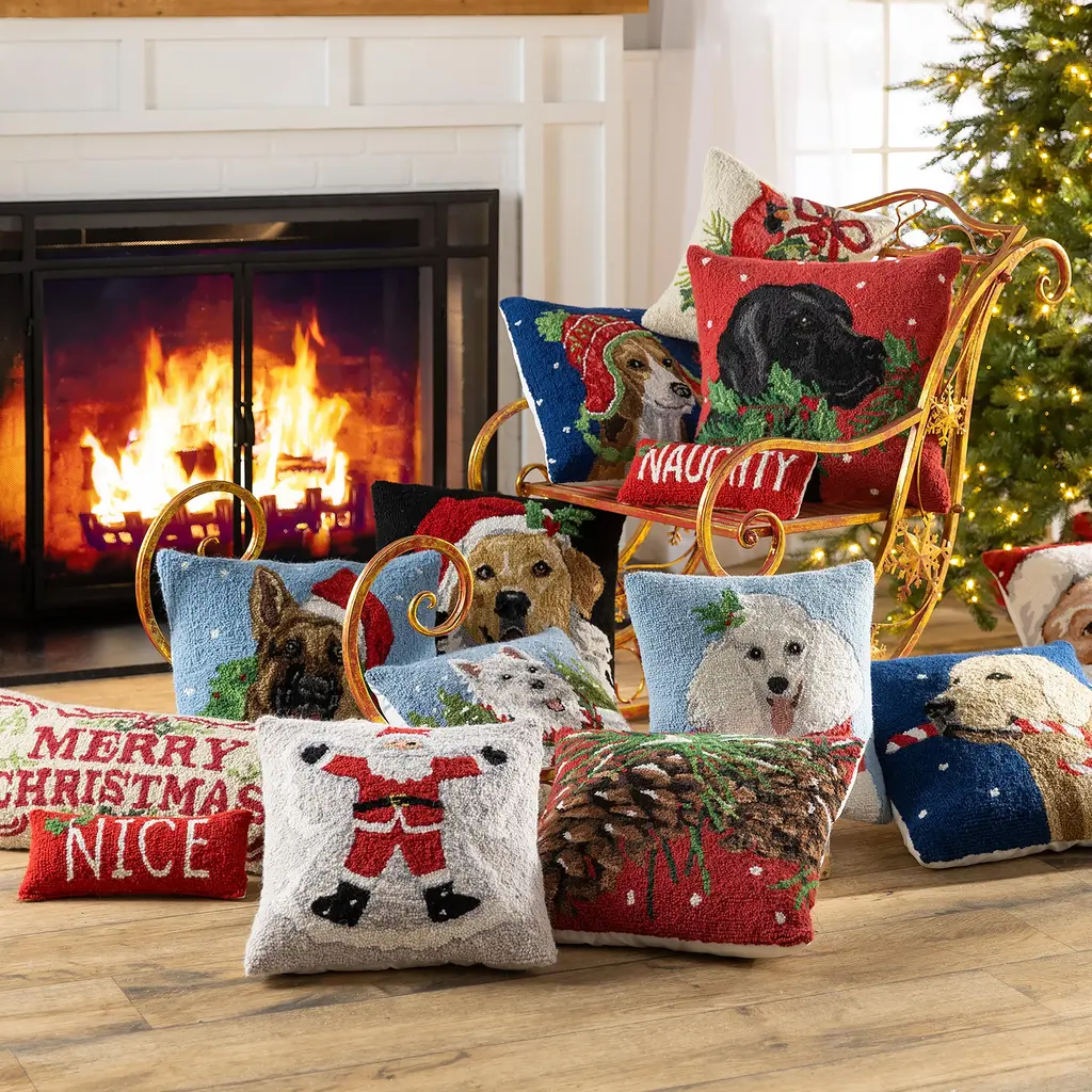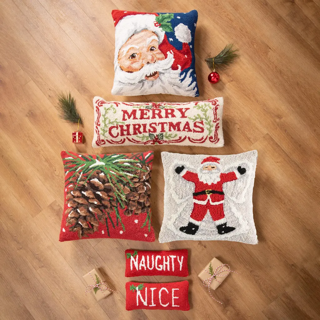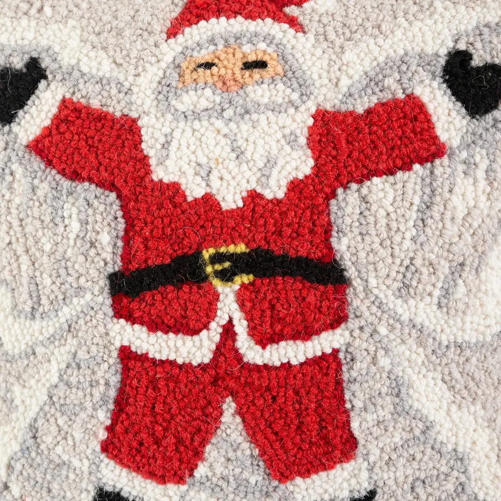 Santa Snow Angel Hand-Hooked Wool Throw Pillow