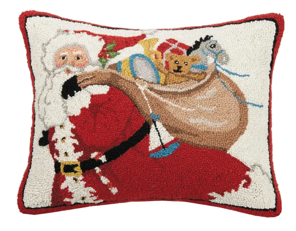 Santa With Bag Of Presents Hook Pillow 16" X 20"