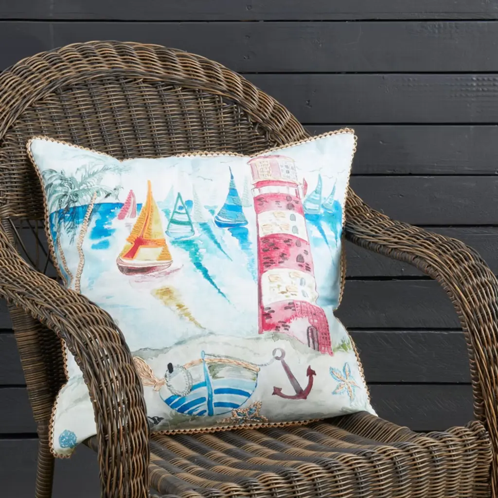 Enhance your home with our coastal outdoor lighthouse poly filled pillow for nautical charm, designed for style and comfort. Perfect for adding a touch of seasonal flair or year-round sophistication to any space.