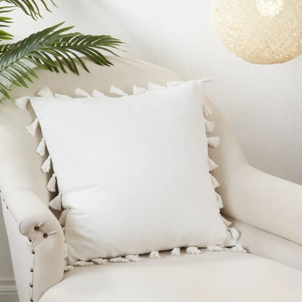 Add a playful touch to your sofa, armchairs or outdoor seating area with this charming Tassel Design Throw Pillow. It's highly versatile and easy to pair, featuring a solid color design with matching tassels on the trim. Fun and bright, this pillow is a great way to update your décor.