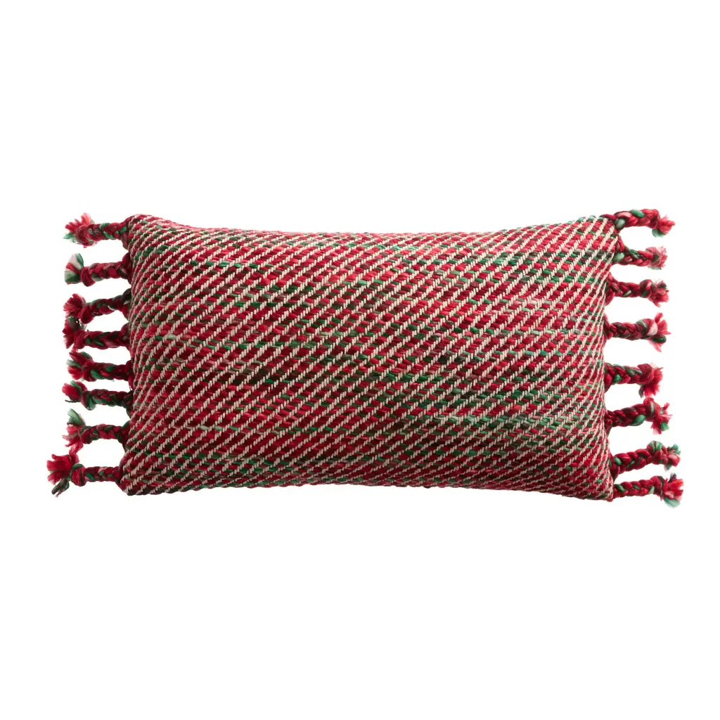 Saro Lifestyle Tasseled Plaid Outdoor Poly Filled Throw Pillow, 18"x18", Red