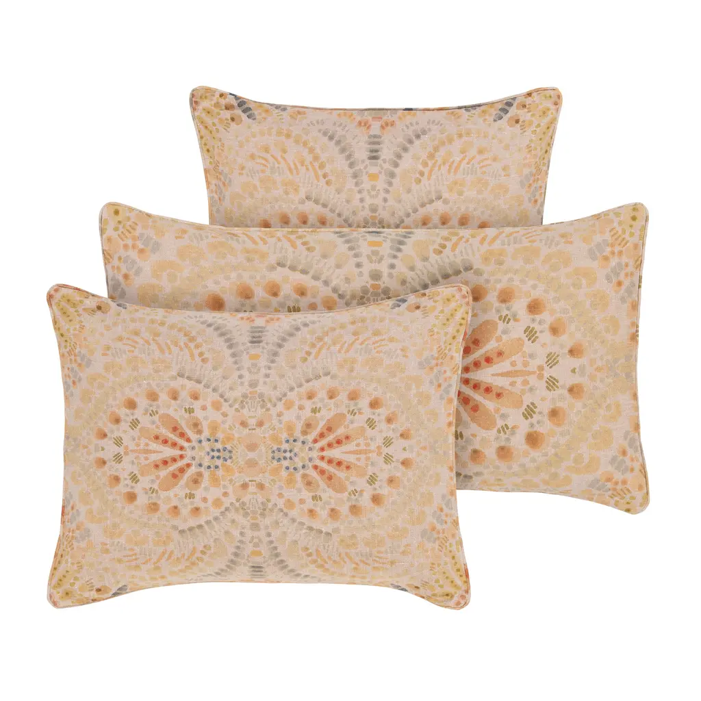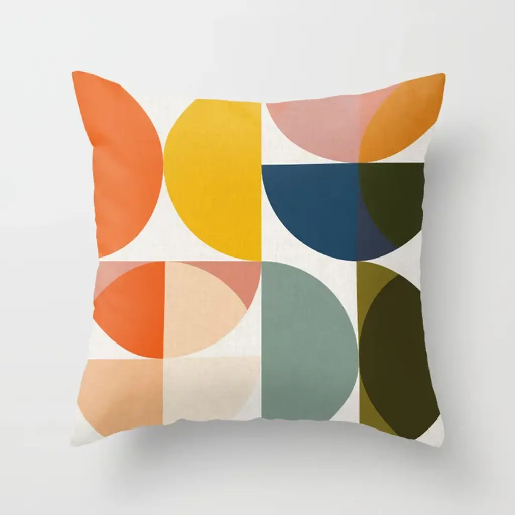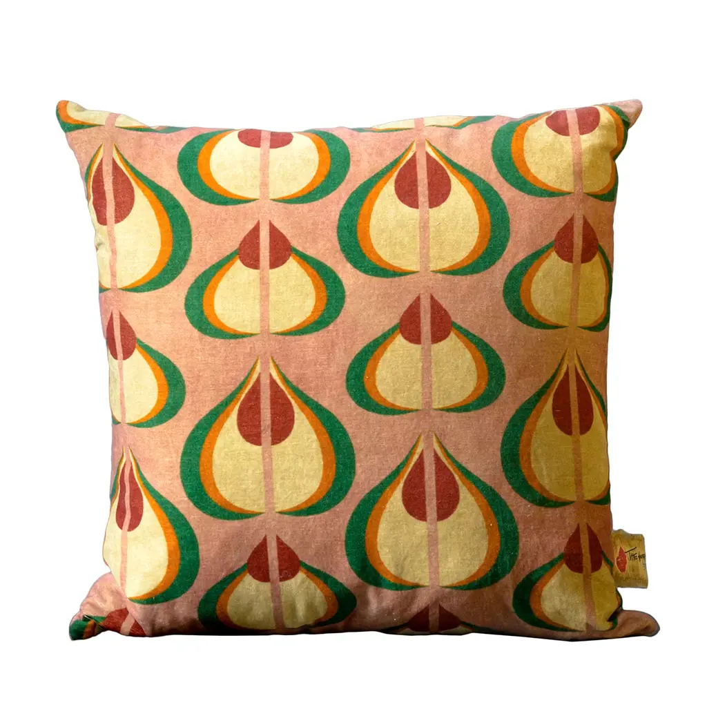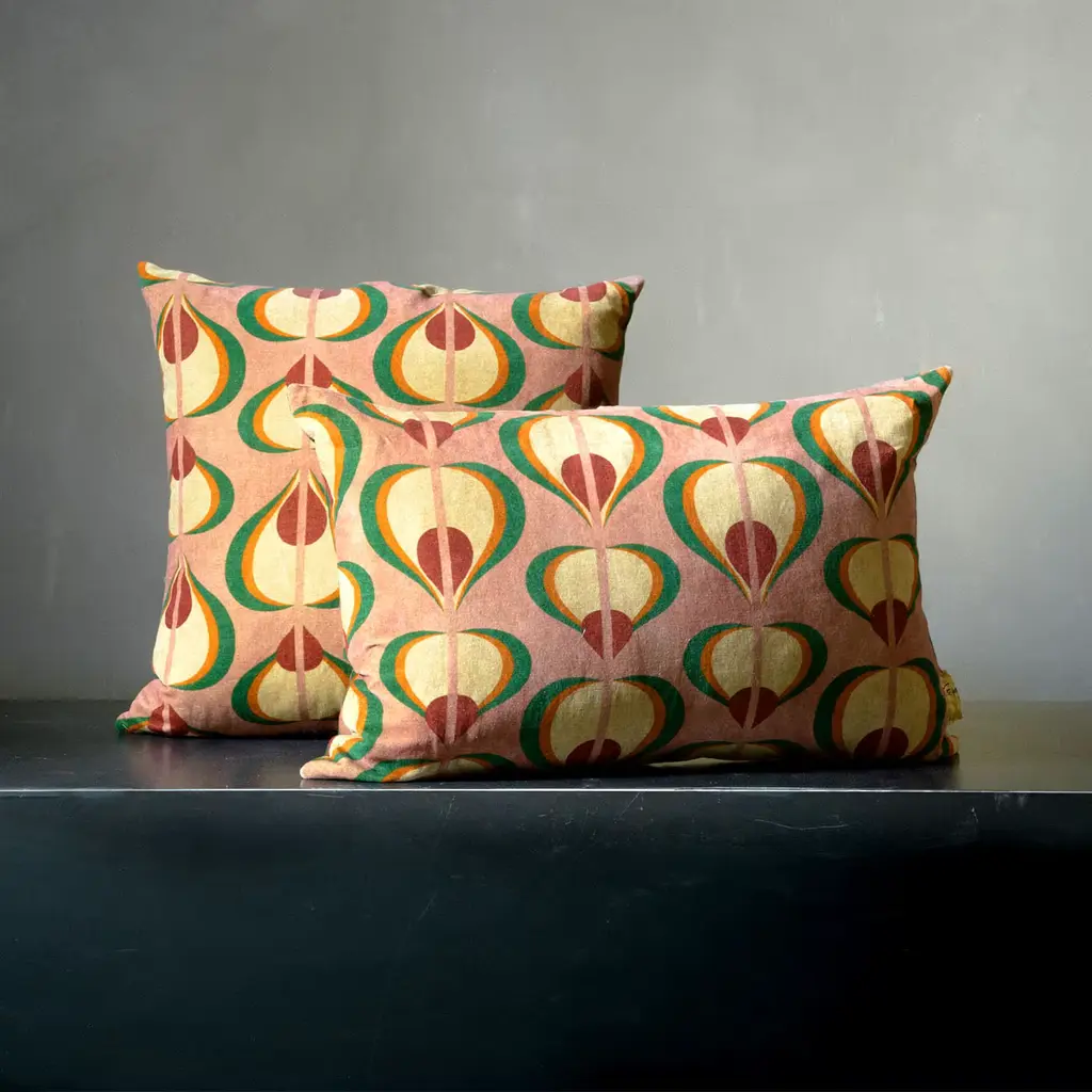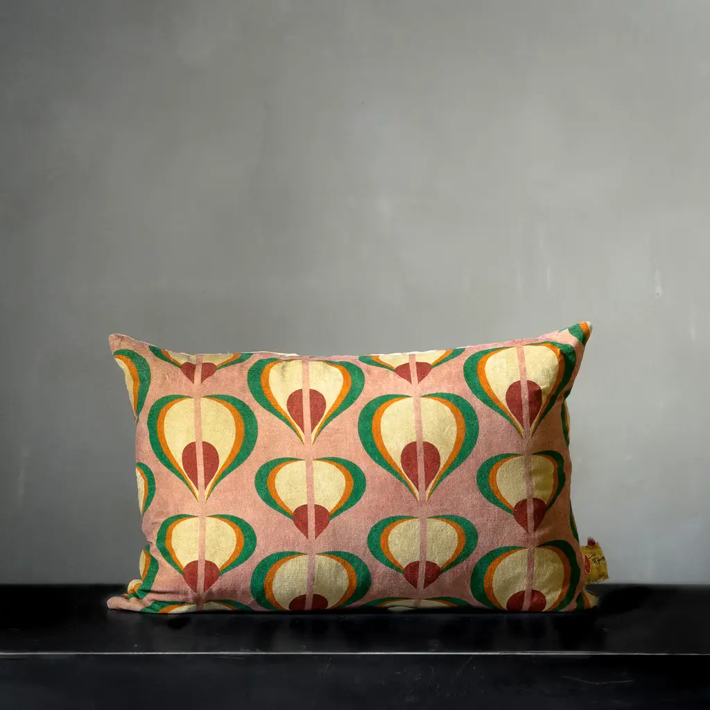A lively and colorful motif vaguely reminiscent of air balloons characterizes lends this rectangular cushion its distinctive decorative look. Hued in a combination of fresh and delicate tones, the print is applied on extra-soft velvet obtained from a blend of cotton and linen. A square version is also available in the Artemest catalog.