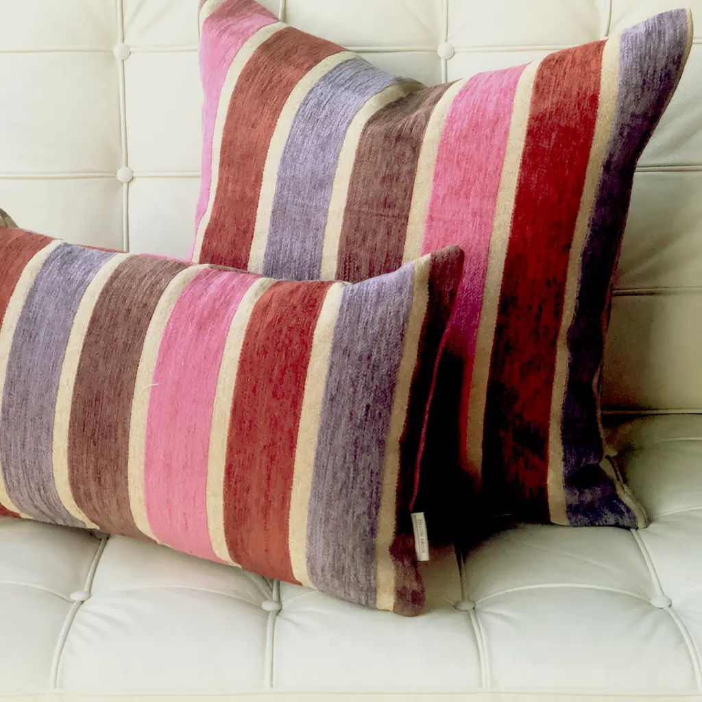 Savannah Stripes 20x20 Pink Purple Chenille Throw Pillow