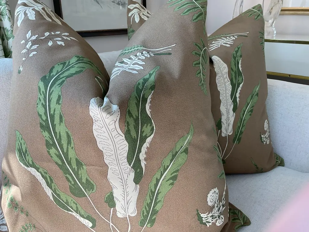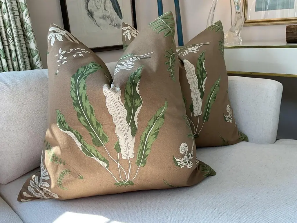 Love these indoor/ outdoor covers!Scalamandre's Elsie de Wolfe fabric is an exquisite blend of elegance and whimsy. This luxurious textile features a charming pattern inspired by the iconic interior designer's style, combining delicate motifs with a sophisticated color palette. The fabric's refined quality and timeless appeal make it a perfect choice for discerning decorators seeking to add a touch of classic glamour to any space.These will come as a 22" pair with plush down inserts. Closure is by way of invisible zipper.About UsAt Accent Marks, each designer pillow is crafted with care using the finest hand-selected fabrics and trims, paired with durable, discreet invisible zippers. We specialize in creating beautiful, high-quality pieces that elevate your home decor. While most of our listings feature 22" pillow pairs, we also offer a range of sizes and single pillow options to suit your needs. All of our Accent Marks pillows are proudly made in the United States.If you don't see the fabric you're searching for, please reach out via message as we have other fabrics available upon request and can create anything that you like. Thank you for visiting Accent Marks!