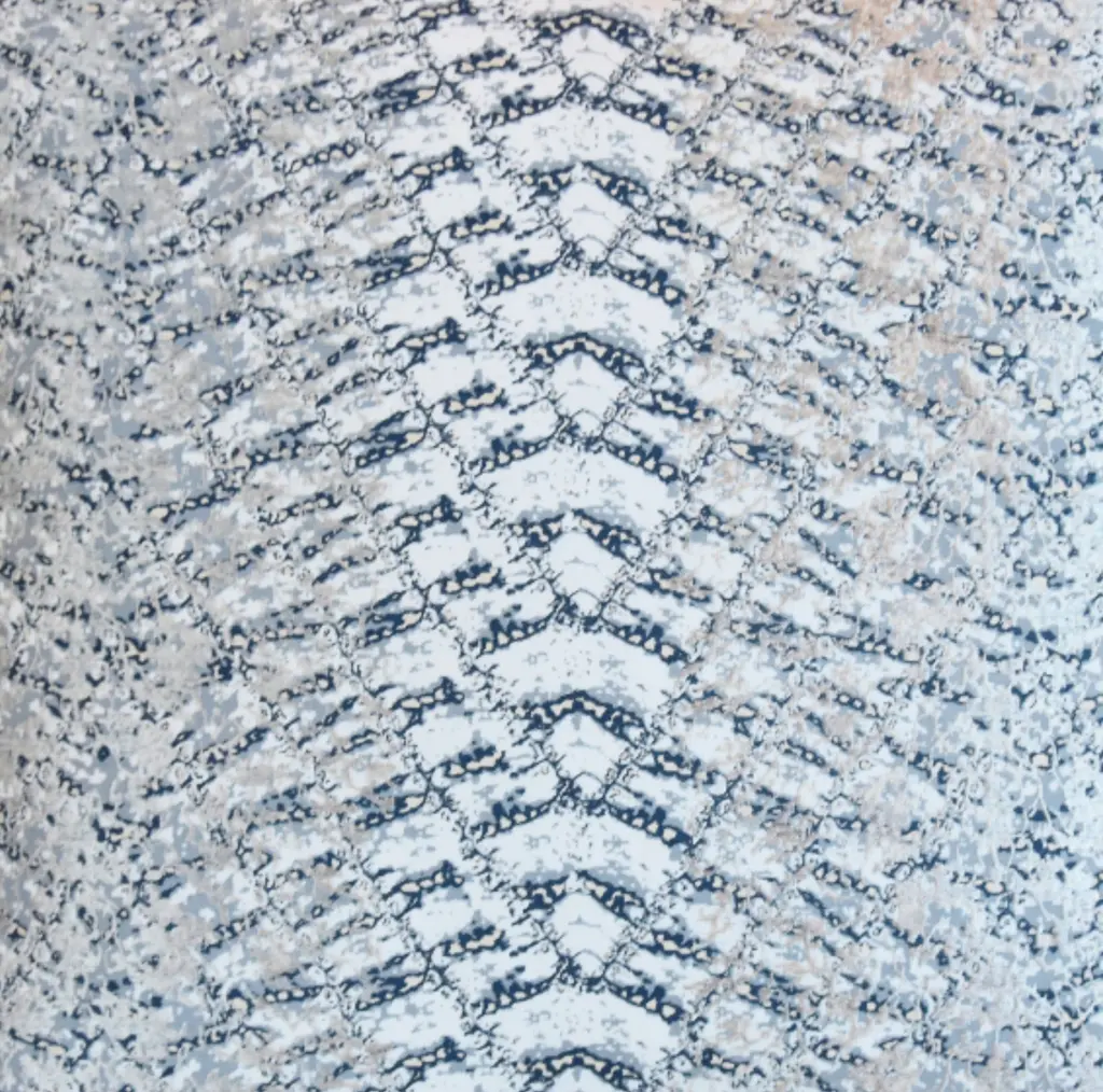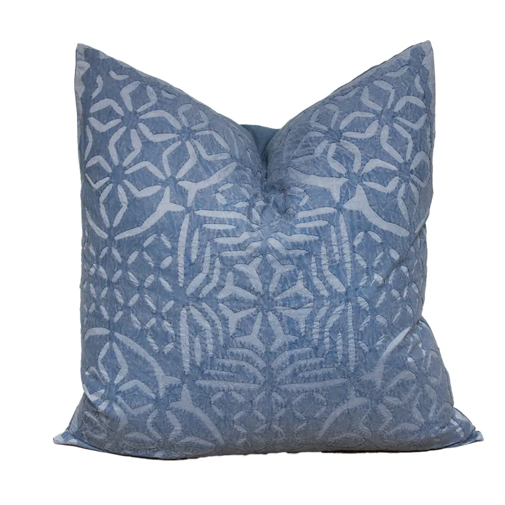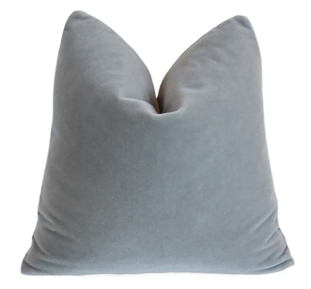 A custom-tailored designer pillow by Mike Seratt of The Prized Pig in Scalamandre fabric called "Komodo” depicts a stunning modern contemporary design. Gray wool fabric is on the reverse. Custom trim. Zipper closure. Generous plump goose feather and down insert. Excellent new, unused, beautiful condition!!
