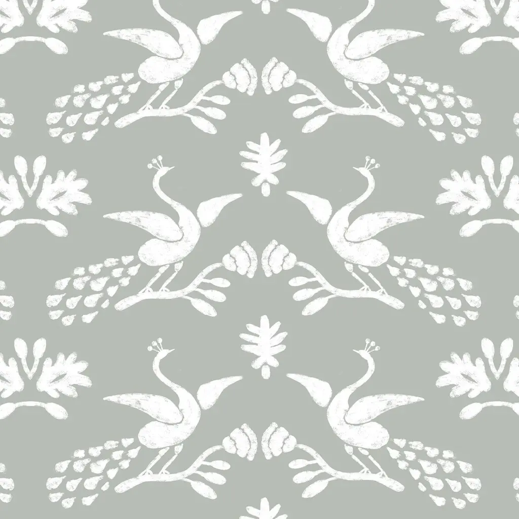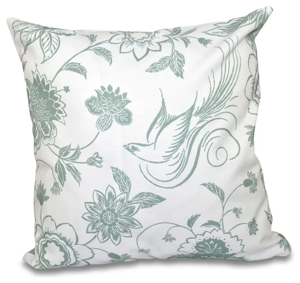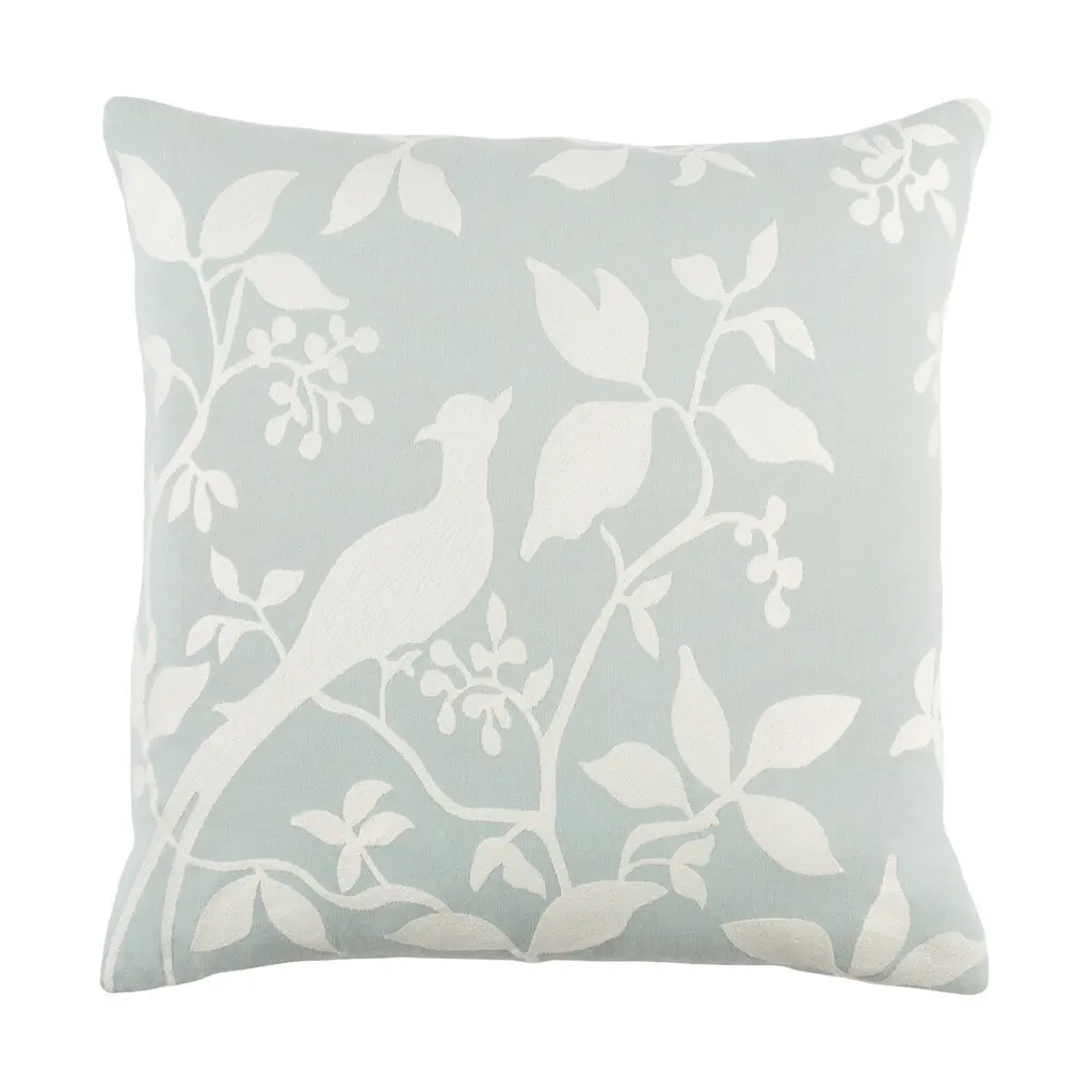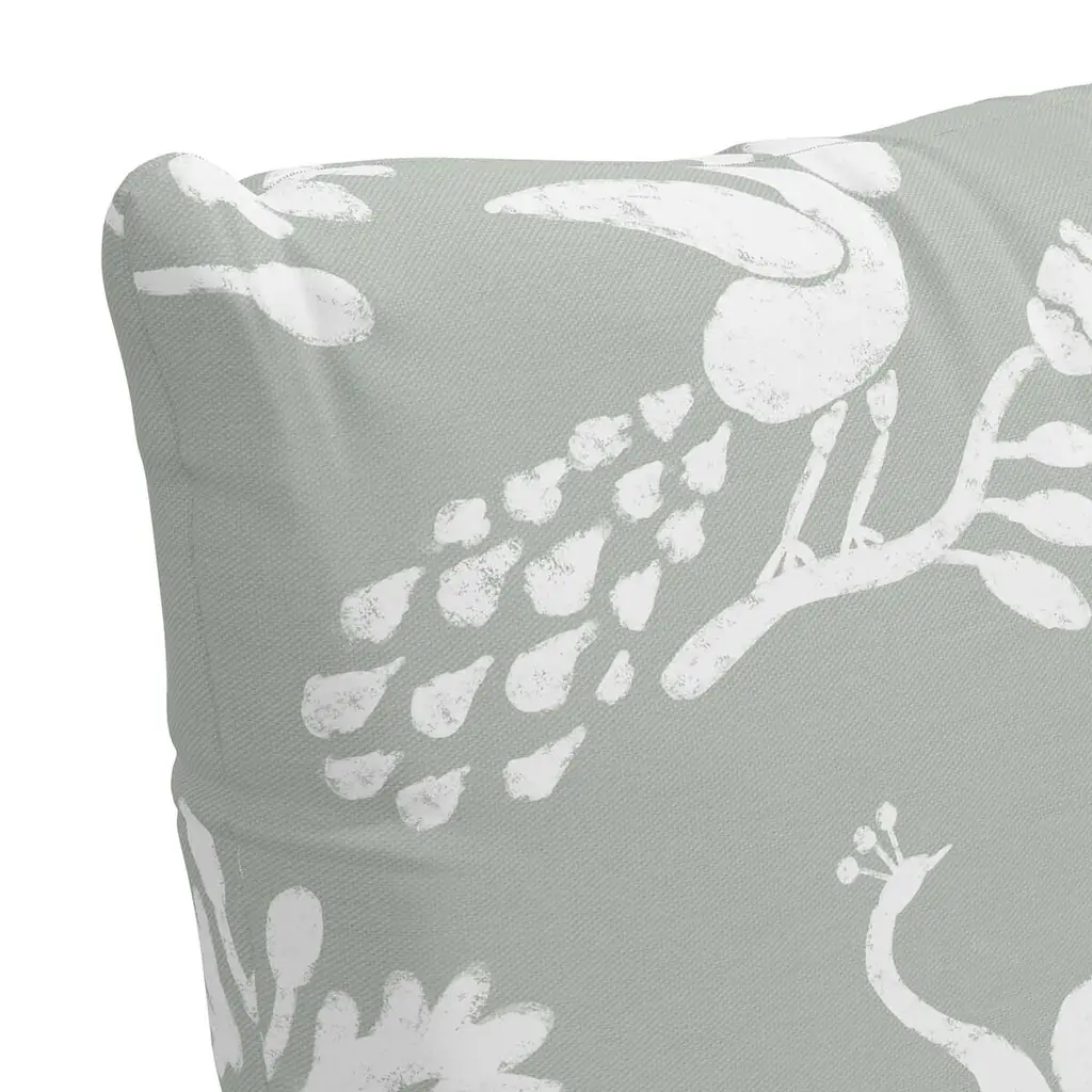 Exclusive to One Kings Lane: Dress up a favorite sofa or chair with this pillow, made from cotton fabric. You'll be proud as a peacock to display this pillow, which features the majestic birds silhouetted in white against soft blue-green. Reversible; pattern on both sides. Insert included.