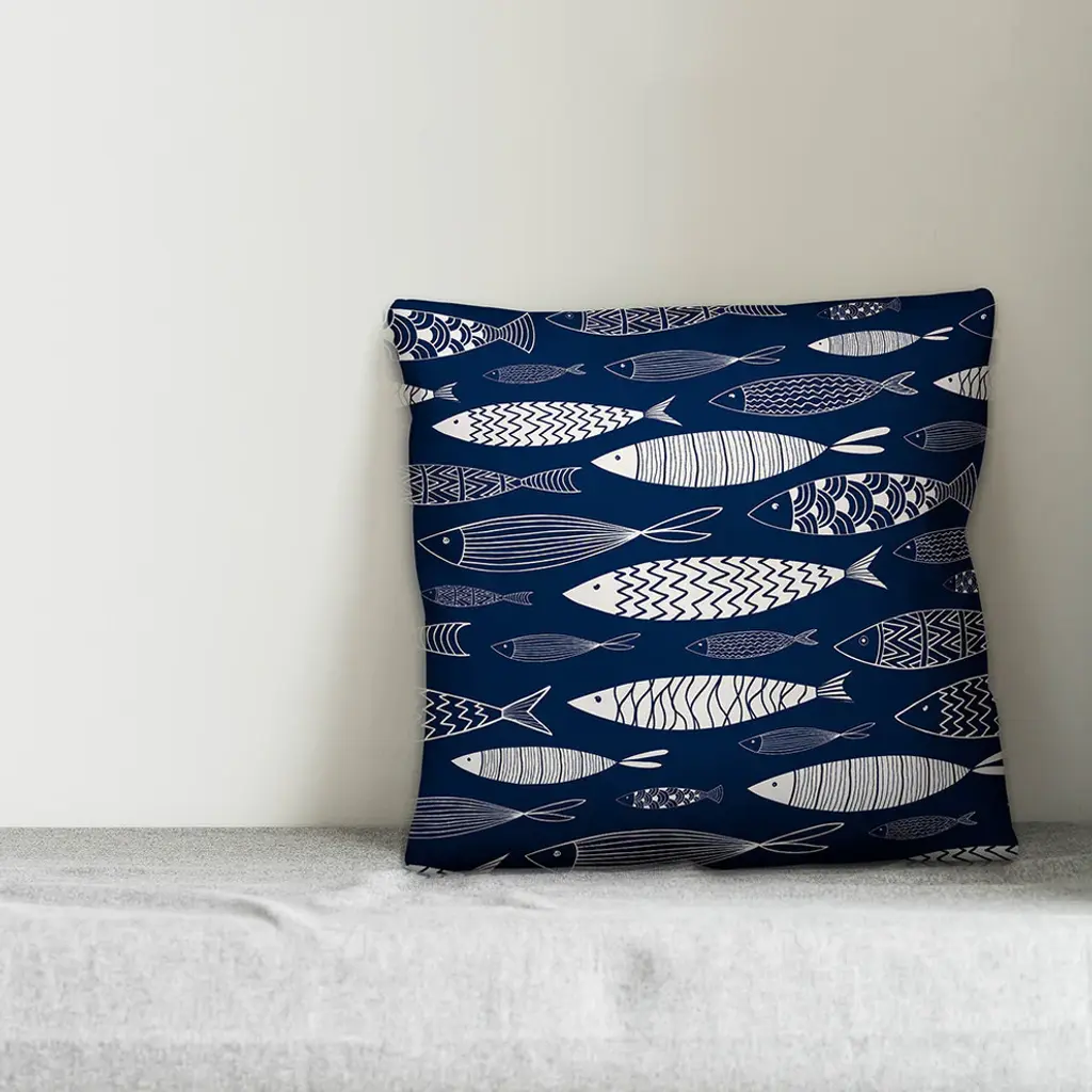 Spruce up your outdoor seating with this fun School of Fish 18x18 indoor/outdoor throw pillow by Designs Direct. The water and mildew resistant heavy weight stretch material provides great color definition and quality. The result is a unique pillow that is sure to add some personality to your space!
