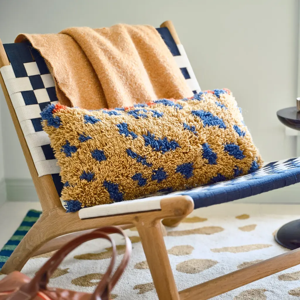 Add a bit of drama (and glamour) to your living space with the Georges Shag Wool Pillow. Inspired by the eclectic closet of Clare V. founder Clare Vivier, its shaggy front pairs a bold jaguar print with a playful checkerboard border. To bring a touch of polish to the mix, it has an exposed brass zipper and solid canvas back.